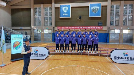 今日授旗,除教育局蔣局長外,台中市籃球委員會常委林益禎與家長會長呂蘭芬亦到場為選手加油打氣。