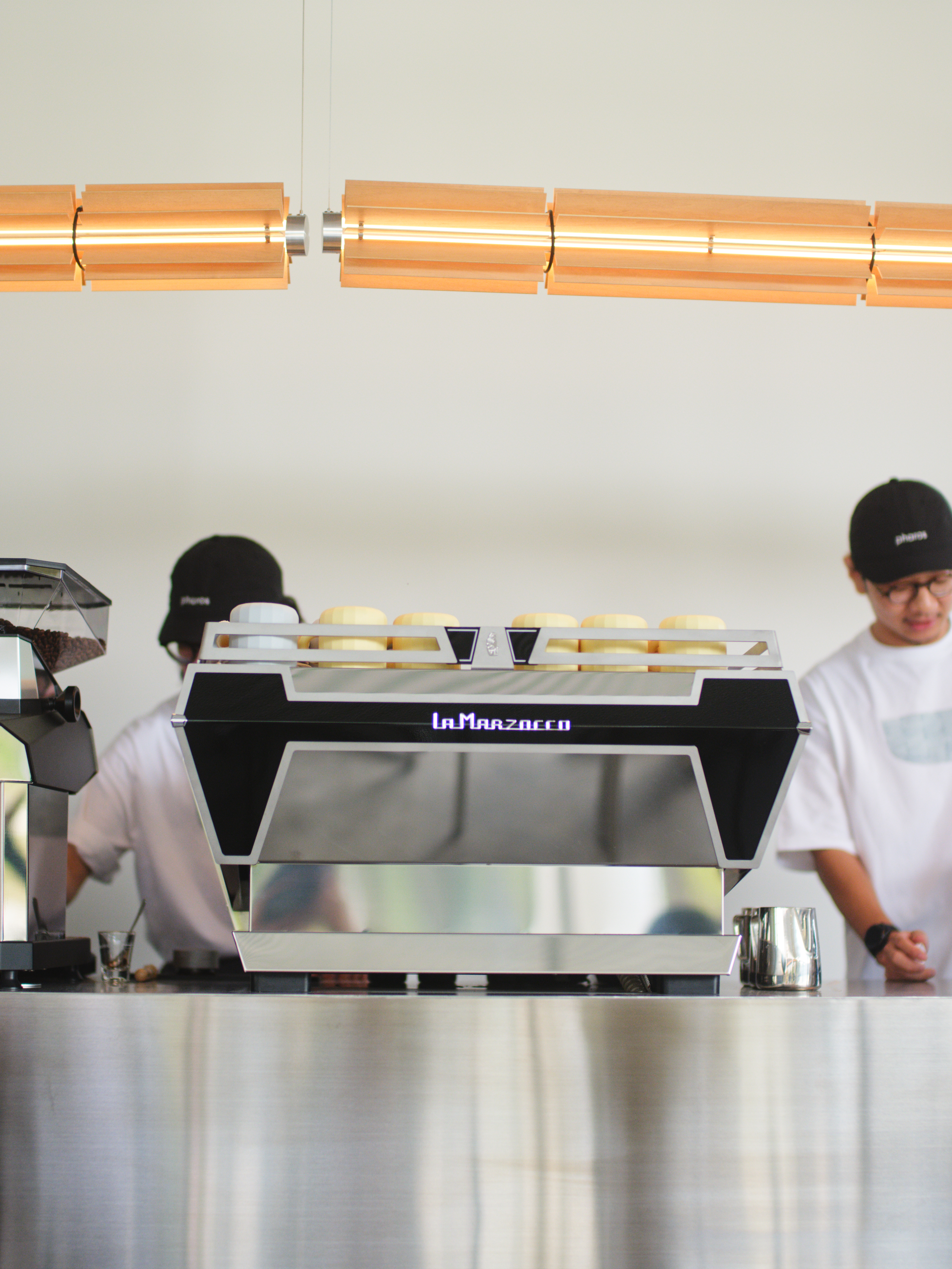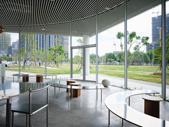 位於一樓的Pharos Coffee以咖啡融入生活為理念,提供淺焙單品手沖咖啡、淺焙義式咖啡與手作麵包等輕食,店內選用臺灣設計團隊製作的家具,並邀請台中合成器音樂家Nick Tsai為空間量身創作聽覺氛圍,讓聲音成為沉浸式體驗的一部分。「Pharos」取自希臘文「燈塔」,象徵在綠美圖通透的建築中,這處空間如同指引風味的燈塔,使觀眾能在此駐足,專注於咖啡本質,享受從容舒適的片刻。
