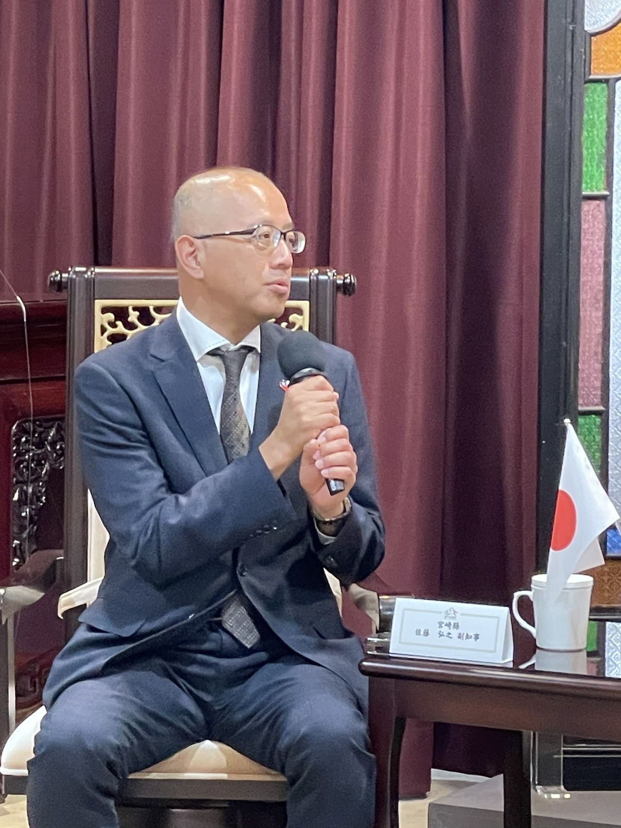 佐藤副知事表示,感謝台中市長期以來與宮崎縣在觀光、產業等多面向的密切合作。台中是台灣重要的半導體產業聚落,宮崎縣與鄰近熊本縣近年也積極布局半導體產業,攜手推動九州成為「日本矽島」。除產業聚落與研發中心外,宮崎大學亦投入相關人才培育,期待未來與台中在產業及人才培育上有更緊密的合作。