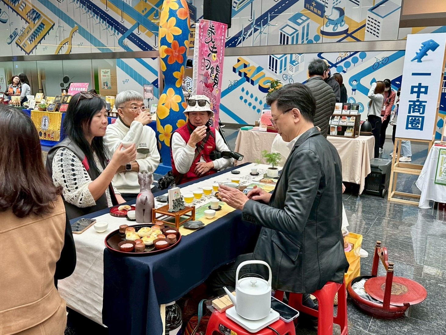 經發局補充,現場也由東海藝術街商圈專業茶師設置茶席,提供民眾品茶交流;適逢農曆年前夕,后里泰安商圈書法老師現場揮毫贈送春聯,提前營造濃厚年節氣氛,邀請市民朋友走出家門、走進商圈,感受在地消費的溫度與人情味。