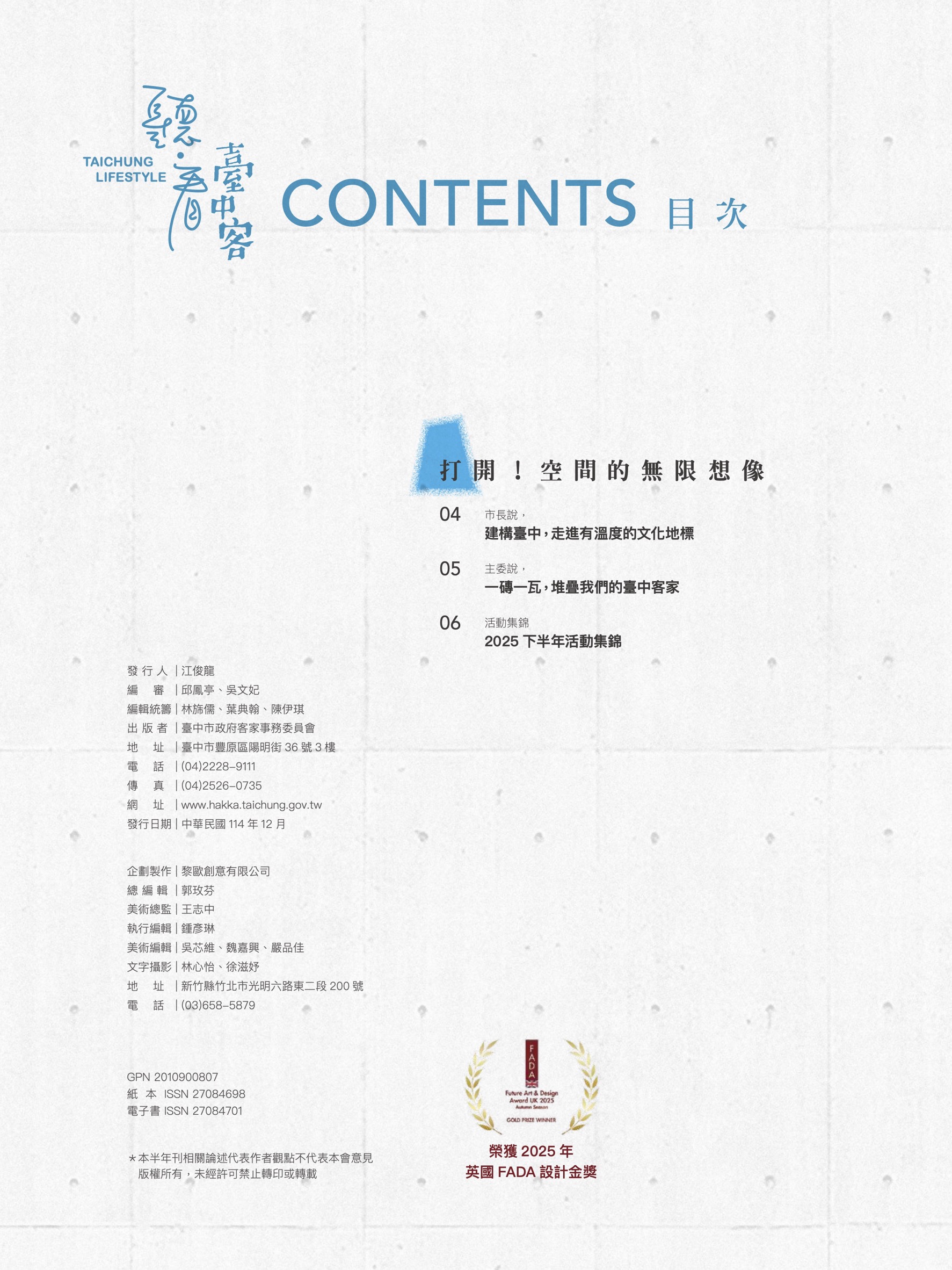 一本記錄客庄日常、人物故事與生活記憶的文化刊物,悄悄站上了國際舞台!由台中市政府客家事務委員會所發行的《聽看台中客》台中客家文化半年刊,從全球眾多參賽作品中脫穎而出,榮獲 Future Art & Design Award UK(英國FADA設計獎)金獎肯定,讓屬於台中客庄的溫暖故事,被世界溫柔地看見。