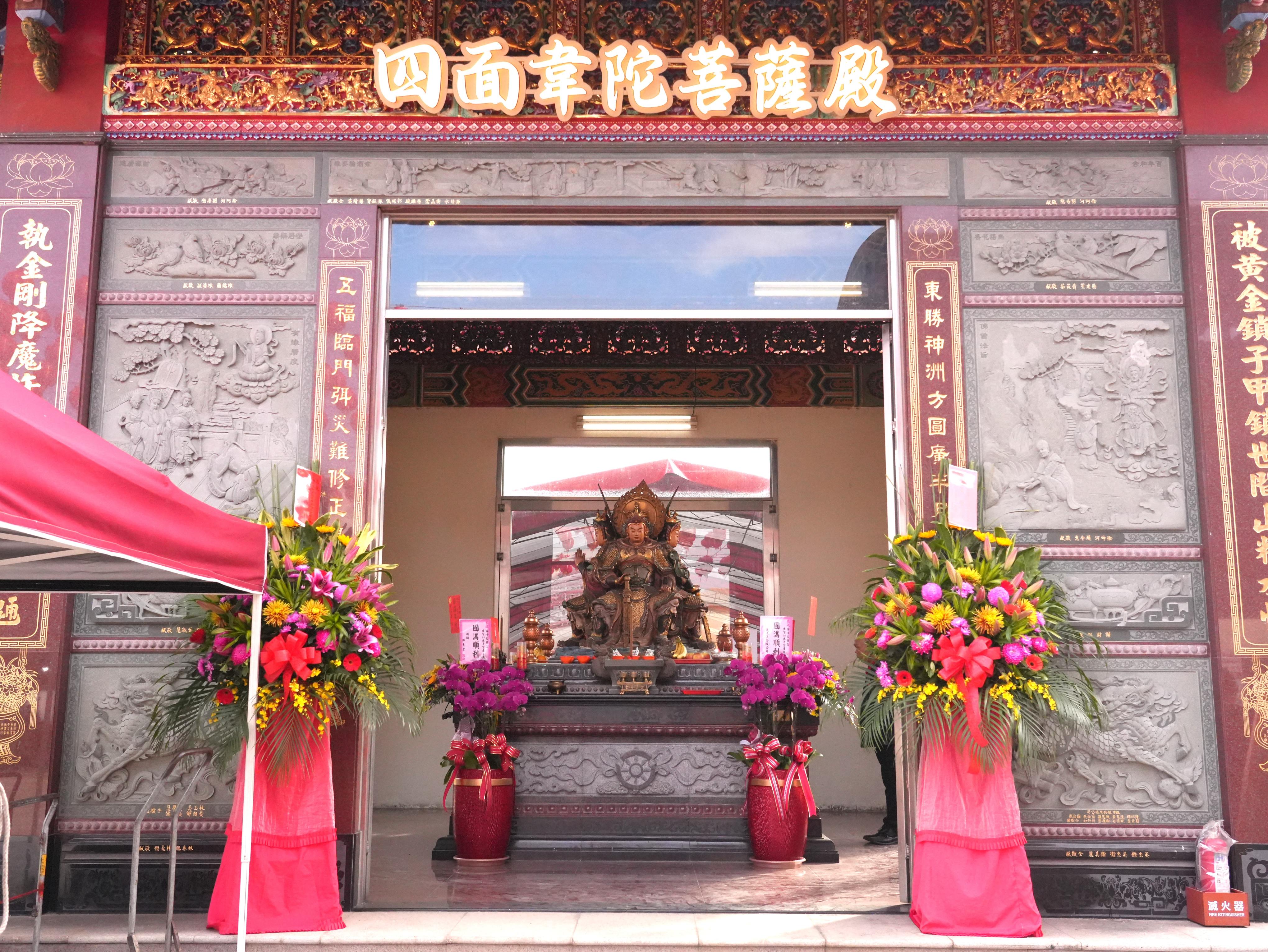 此外,霧峰天顯宮主祀神尊伍顯大帝為南無大智文殊師利世尊菩薩、伍顯靈官大帝、護法韋陀尊天菩薩、華光天王與夜遊神等五位神尊的合稱,格外受到信眾倚重,而因伍顯三大帝是韋馱菩薩所演化,宮前廣場亦設有四面韋馱菩薩殿,極具特色。