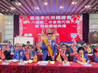 台灣李氏宗親總會今(25)日在北屯區大和屋日本國際美食館,盛大舉行「第16屆第2次會員代表大會暨祭祖懇親典禮」,來自全台各縣市近400位李氏宗親齊聚一堂,透過莊嚴隆重的祭祖儀式,緬懷先人德澤,凝聚宗族情誼,展現宗親會深厚的向心力與傳承力量。民政局副局長陳寶雲代表市長盧秀燕到場致意,肯定總會長期推動宗族文化傳承,實踐慎終追遠精神,對促進社會和諧具正面意義,並祝福大會圓滿成功,會務昌隆。
