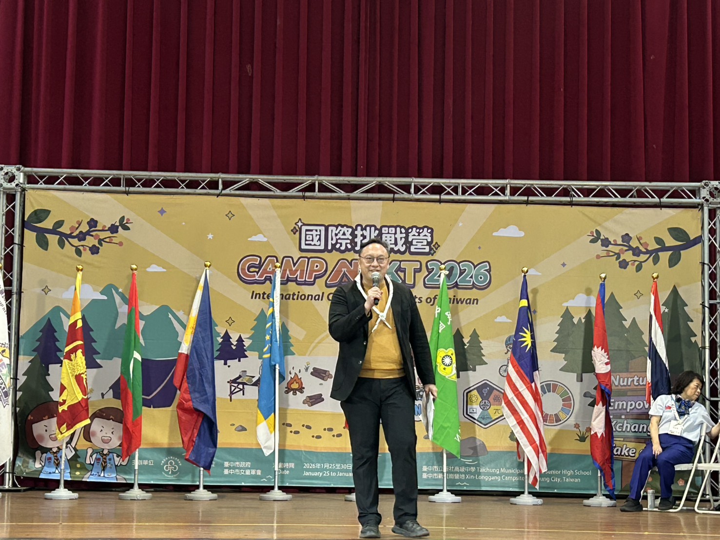 台中市副市長鄭照新出席開幕典禮,肯定此次營隊主題「CAMP NEXT—培育(Nurture)、賦能(Empower)、交流(eXchange)、行動 (Take Action)」,使女孩從被支持、被培養,到建立能力、彼此連結,成為能夠發揮潛能採取行動、改變世界的女童軍,同時勉勵女童軍們勇於挑戰自我,拓展國際視野,為永續未來貢獻行動力。