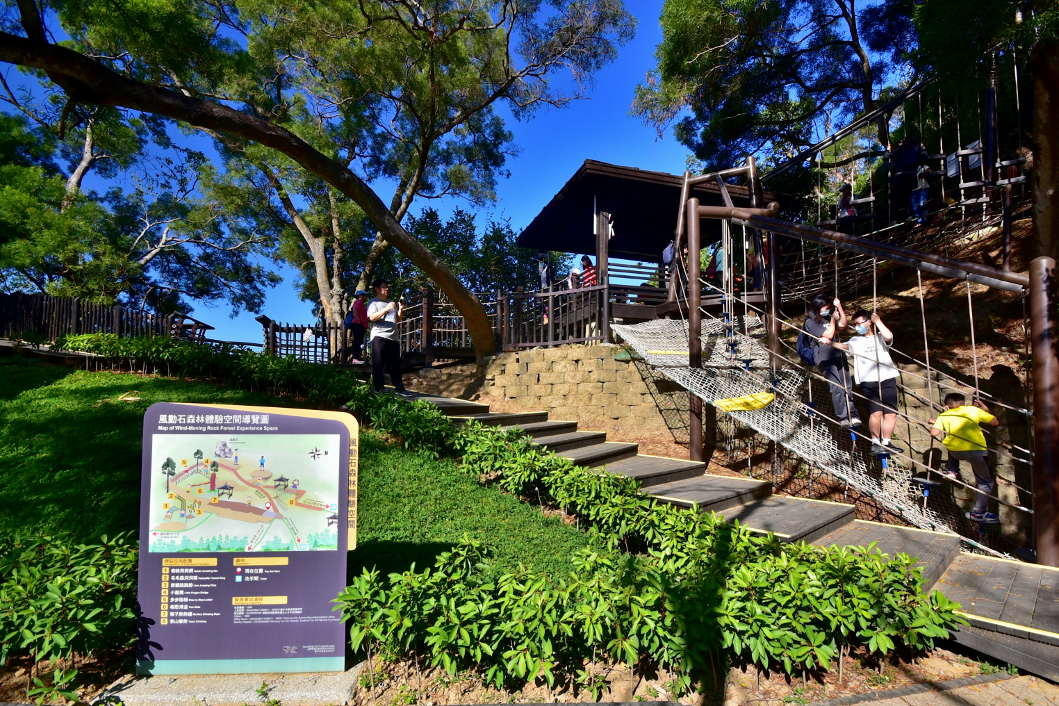 台中市政府觀光旅遊局長陳美秀推薦,最親民的9號及9-1號「愛戀步道」,從步道口出發,沿途不僅有「小九與阿知」的戀愛故事打卡點,登頂後還有花團錦簇的拱門,讓登山不再只是流汗,更是充滿粉紅泡泡的體驗;而最受家長歡迎的8號「遊戲步道」,與6、7號步道串聯,終點就在風動石公園,這裡有超吸睛的相思滑道與爬網,保證讓孩子放電放光光,回家秒入睡;7號「藥草植物教學步道」,沿途林相植物多樣,設有藥用植物解說導覽;想帶點仙氣的遊客,則推薦走一趟6號「仙境步道」,跟著主角「孫景」的腳步遊歷南海寺與觀音亭,在芬多精的洗禮下開啟新年的好福氣。
