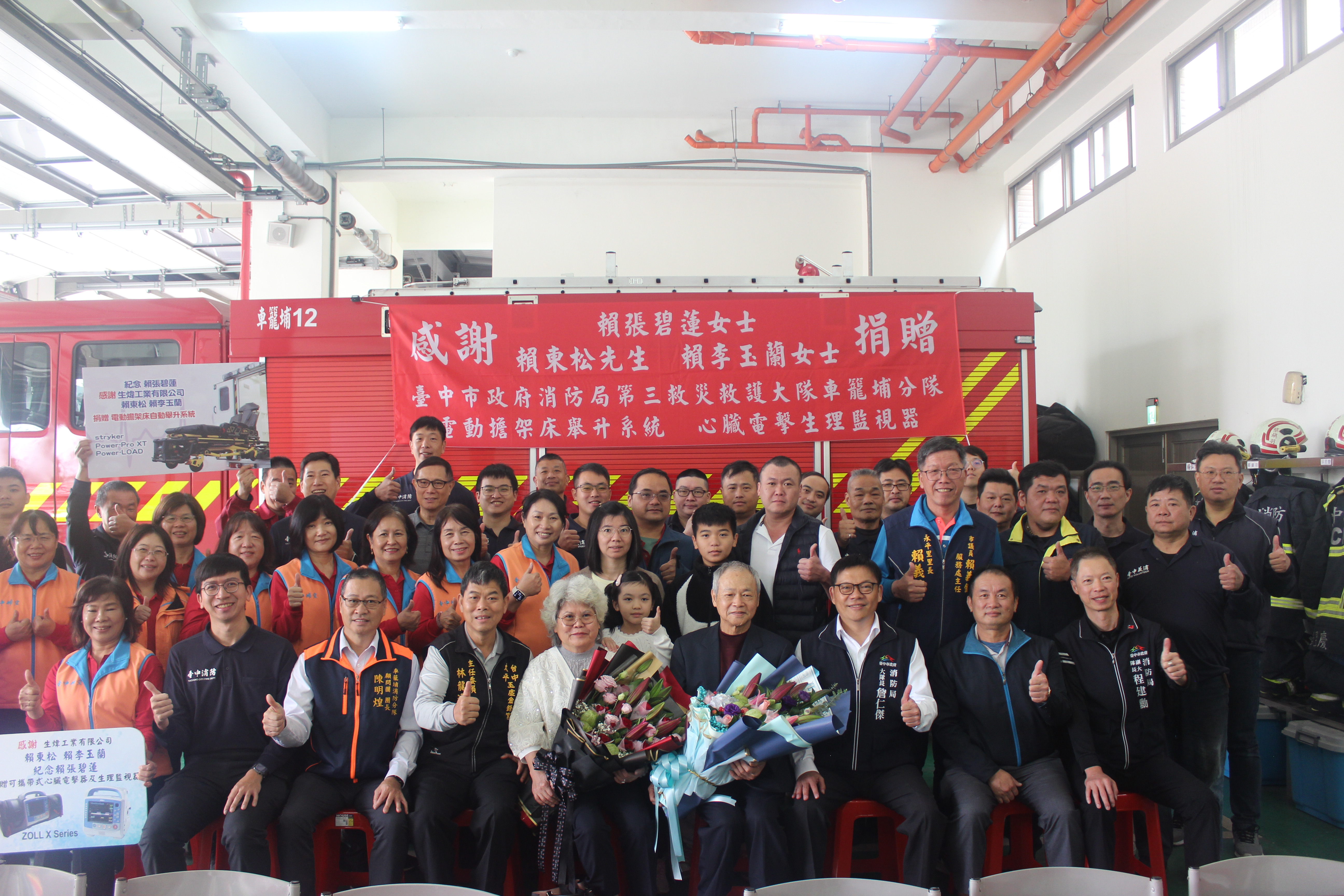 消防局特別感謝生煒工業有限公司賴東松先生、賴李玉蘭女士長期關注公共安全、熱心支持消防工作,其善行義舉不僅展現深厚的地方情誼,也為提升中市消防量能注入重要助力。消防局將持續秉持專業精神與精訓勤練的態度,全面強化救災救護能力,為市民生命財產安全提供最堅實的保障。