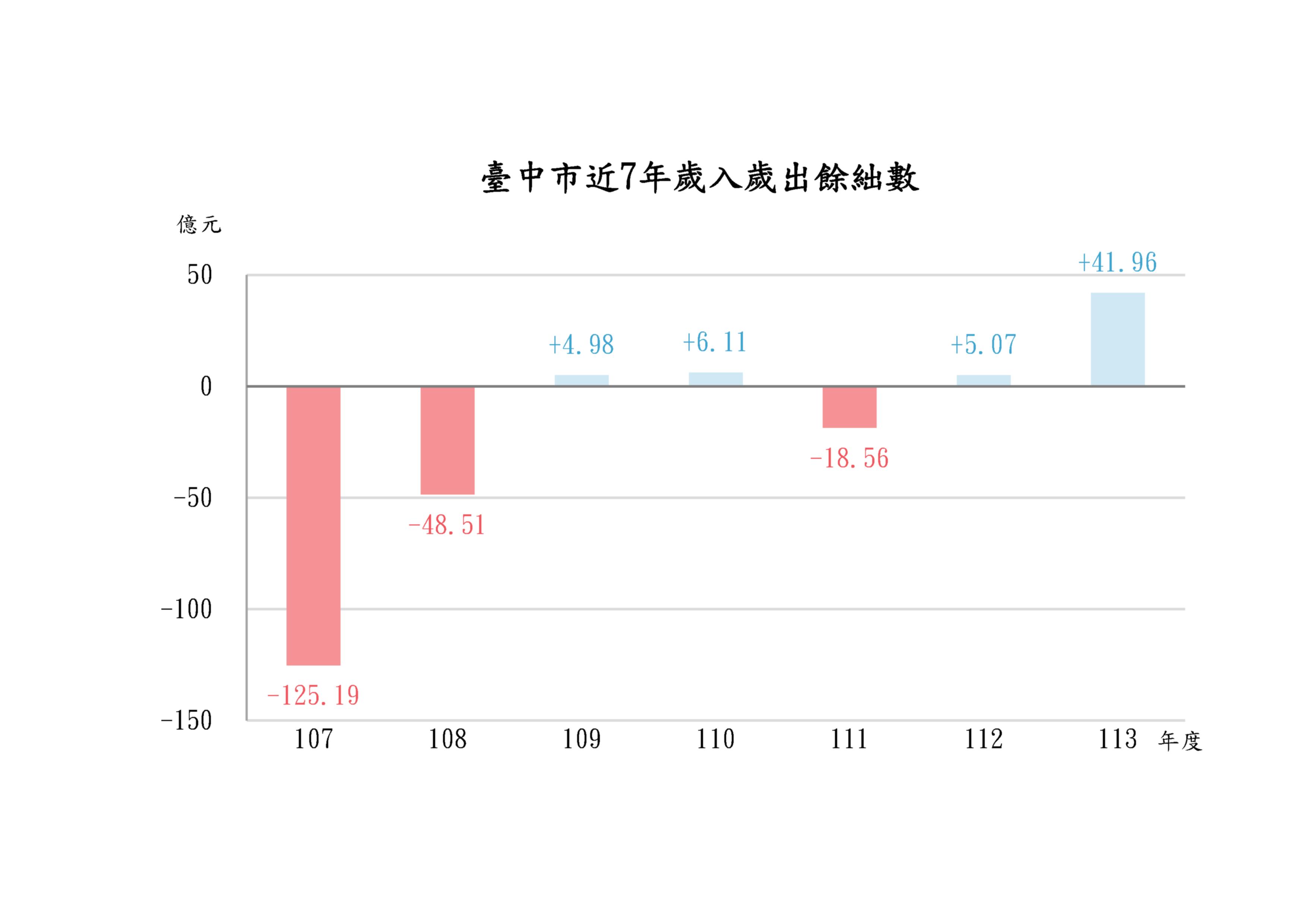 主計處指出,在預算執行與控管方面,市府持續精進落實預算執行、開源節流與標案管考等機制,確保預算執行與施政目標相互契合,自109年度決算首度由赤字翻轉為賸餘以來,市府近7年間已4度(包括109、110、112及113年度)達成歲入歲出賸餘,顯示開源節流財務管理已見成效,並持續透過滾動檢討節流實施要項內容、研擬訂定具體之量化績效衡量指標等措施,審慎控管支出規模,充分展現市府在推動重大市政建設同時,仍能維持財政穩健的良好平衡。