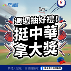 運動局進一步說明,為提前炒熱賽事氛圍,運動局宣布自2月2日起連續四週推出「中市府前WBC直播抽好禮!週週抽、現場領 一起為中華隊加油!」活動,前三週將抽出限量「2026台日棒球國際交流賽」門票,每週一於運動局官方粉絲專頁開放留言應援,每週五公開抽獎,邀請球迷一同為中華隊集氣加油。