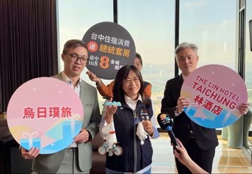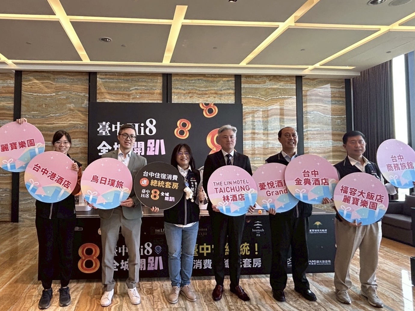 台中市政府觀光旅遊局持續推動「台中Hi8 全城開趴」系列活動,深受民眾關注的住宿行銷方案「來台中當總統-住宿消費抽總統套房」邁入第3場抽獎活動,今(28)日在林酒店由觀旅局長陳美秀、台中林酒店代表及烏日璞旅代表出席抽獎儀式,邀請民眾透過實際入住台中優質旅宿、登錄消費發票,以總統級視角體驗台中城市魅力。