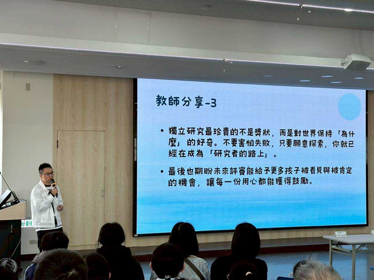蔣局長表示,教育局長期支持學校推動資優教育,鼓勵學生透過獨立研究培養問題意識、創新思考與自主學習能力。此次成果發表會不僅展現學生深厚的研究實力,也提供各校師生彼此觀摩、相互學習的平台。獲選特優的學生團隊,每人可獲得2,000元禮券作為鼓勵;未來也將持續於每年9月至隔年1月辦理相關評選活動,歡迎更多資優學生踴躍參與。
