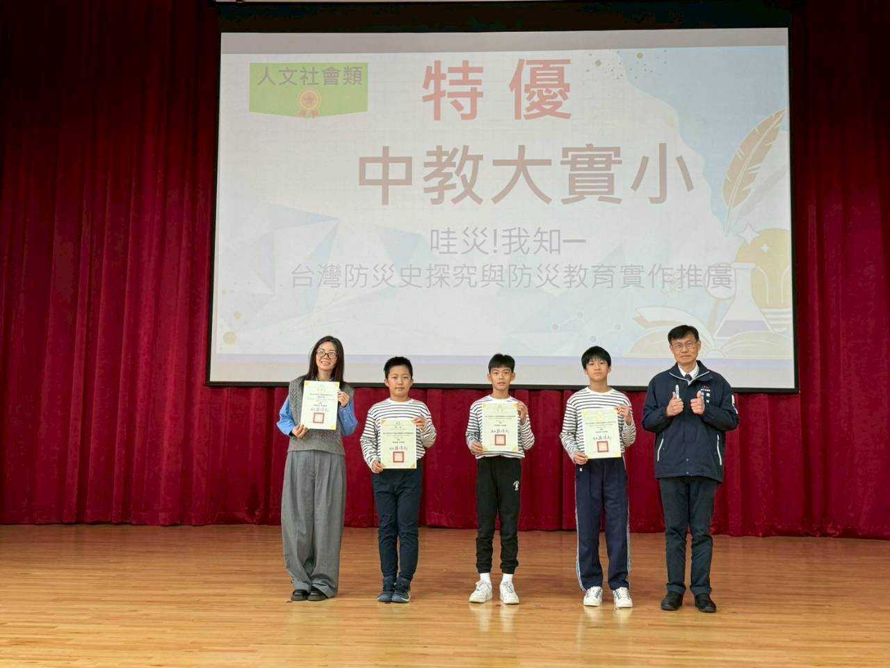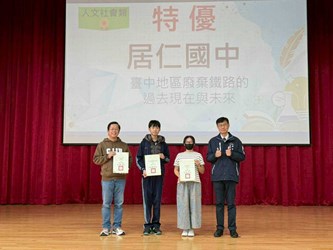 教育局進一步指出,在人文社會類方面,國立中教大實小與居仁國中榮獲特優。國立中教大實小「哇災!我知─台灣防災史探究與防災教育實作推廣」將防災教育結合實作推廣,成功把嚴肅議題轉化為生活化學習;居仁國中「台中地區廢棄鐵路的過去、現在與未來」則深入探究在地發展脈絡,結合實地踏查與精確地圖繪製,展現學生對文史研究的高度熱忱,兩校作品皆獲評選委員一致好評。
