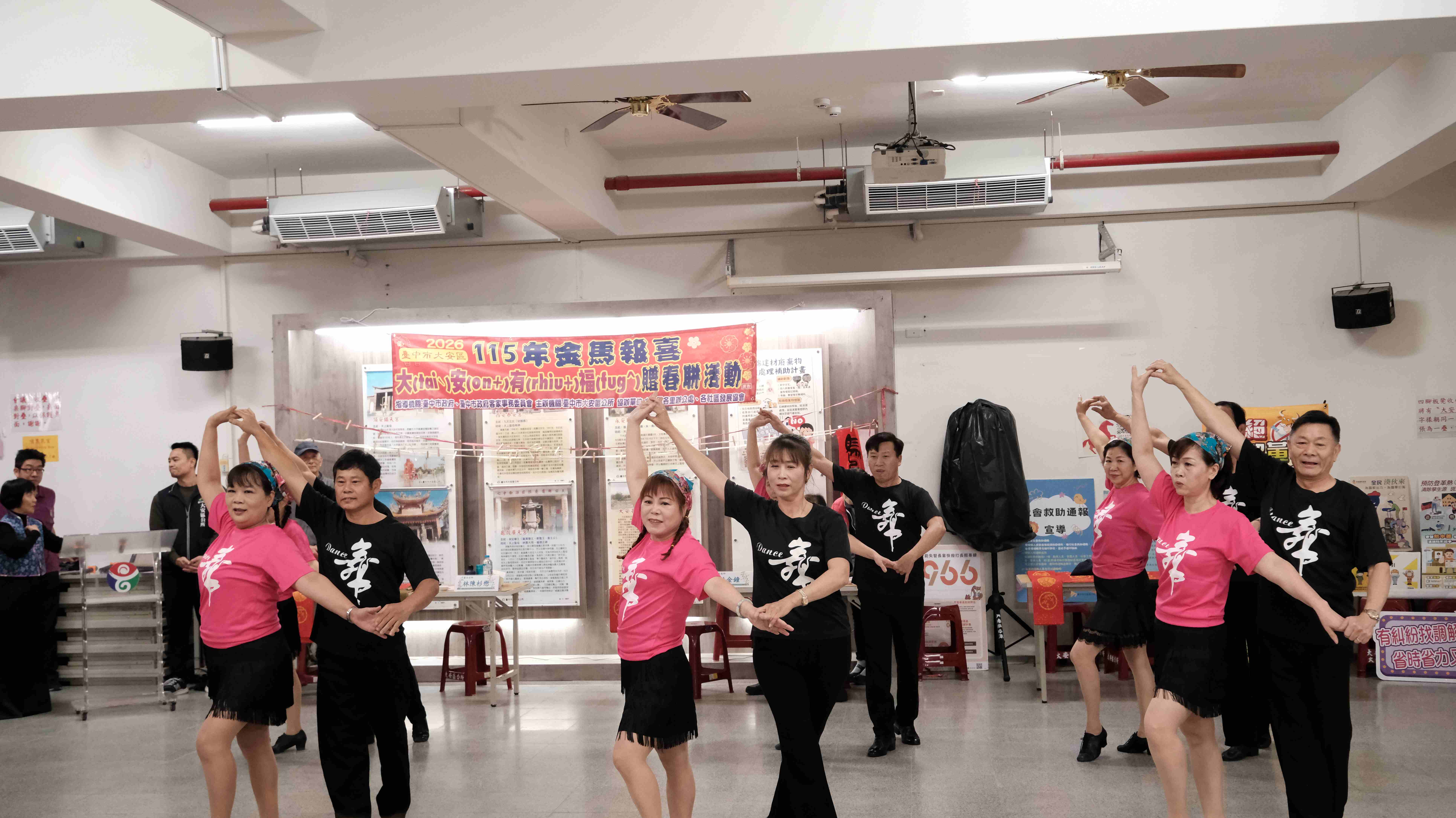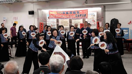 活動開場演出除了香頌合唱團以外,在地長青學苑「大安區運動舞蹈班」也帶來十分精采的客家歌舞表演,展現出銀髮族的朝氣,為活動增添熱鬧的年節氣氛。