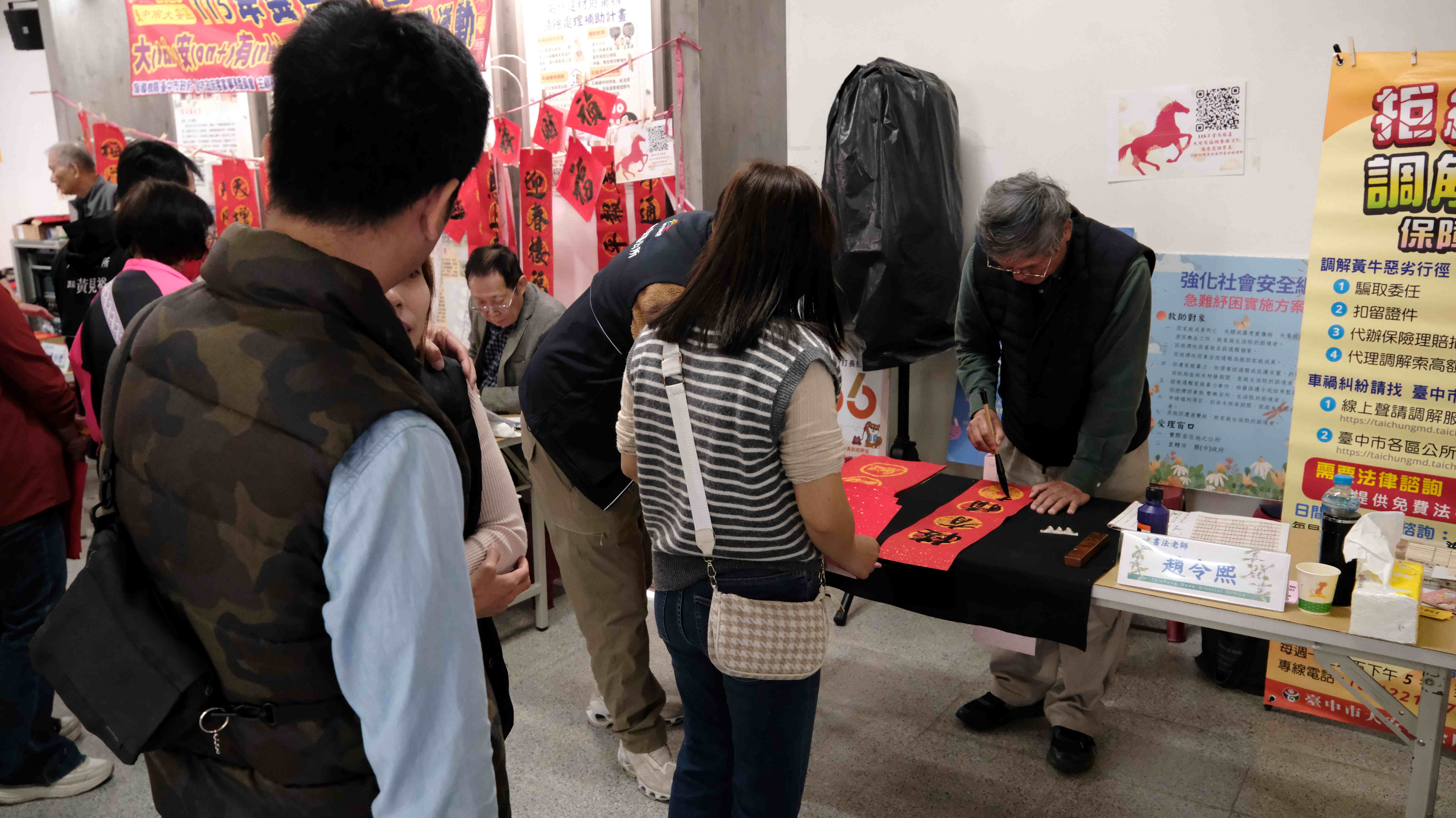 為推廣及傳承客家文化,台中市政府客家事務委員會與大安區公所合作,於今(31)日上午在大安區聯合里民活動中心舉辦「115年金馬報喜大安有福贈春聯」活動,市府客委會主委江俊龍及勞工局長林淑媛一同代表市長盧秀燕,向市民朋友獻上新春祝福。