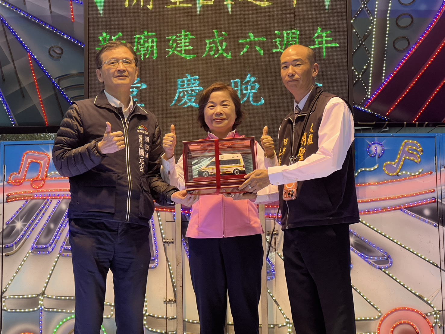 消防局說明,此次捐贈的救護車,將配置於大雅分隊執行緊急救護勤務,協助救護人員在分秒必爭的急救現場中,提供即時且專業的到院前救護服務,對於強化大雅區及鄰近地區的緊急醫療救護網,具有相當實質的助益,也為地方公共安全注入一股穩定而溫暖的力量。救護車捐贈儀式由明聖堂住持王嘉德先生代表廟方捐贈,消防局楊副局長並回贈感謝匾額及救護車模型,以表彰明聖堂及全體信眾長期支持地方消防救災救護工作的善行義舉。