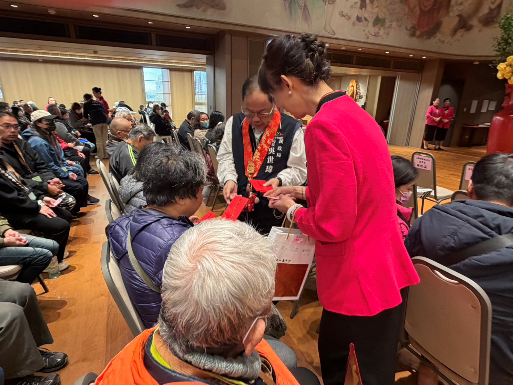時逢歲末寒冬、春節將至,佛光山惠中寺攜手佛光山慈悲社會福利基金會,今(1)日於惠中寺三樓大殿舉辦慶祝法寶節暨寒冬送暖活動,發放1,400戶福田戶物資箱,並致送每戶3,600元關懷金,同時提供熱騰騰的臘八粥,為寒冬注入溫暖與祝福。台中市政府民政局長吳世瑋代表市長盧秀燕出席致意,肯定佛光山惠中寺長期投入公益關懷,以實際行動溫暖弱勢族群,並透過宗教文化傳遞正向能量,為社會帶來安定力量。