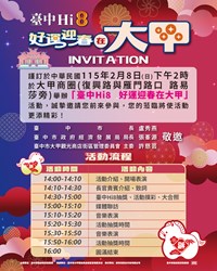 演唱會經濟持續發威,帶動百億商機!「台中Hi8」系列活動串聯8大節慶,掀起全城消費熱潮,消費登錄金額昨(1)日正式突破100億元大關。為回應全國民眾熱烈參與,台中市長盧秀燕宣布,將於2月8日在「台中Hi8、好運迎春在大甲」活動中,加碼抽出1名108萬元現金壓軸大獎;同時,為讓民眾有更充裕時間整理消費憑證,消費登錄補登期限延長至2月6日,年前把握最後機會,百萬紅包就等這一波。
