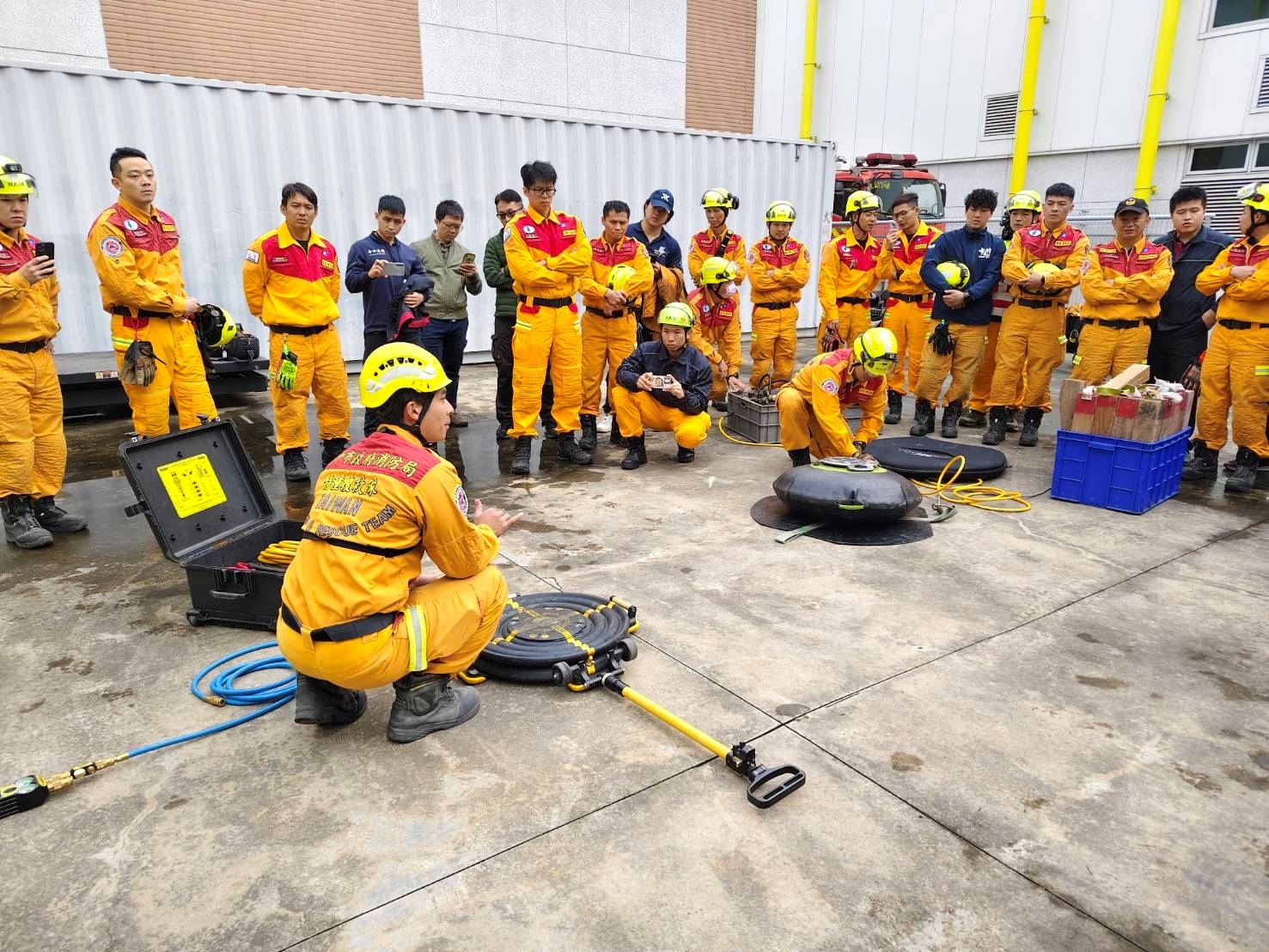 中捷公司指出,此次訓練採雙向交流方式進行,由中捷公司維修處主管向消防局特搜大隊詳細說明捷運車廂結構特性、頂升復軌救援作業流程及相關注意事項,並介紹專用救援器材的功能、操作重點與使用限制,協助救災人員更深入了解捷運系統特性,提升第一線現場判斷與處置效率。