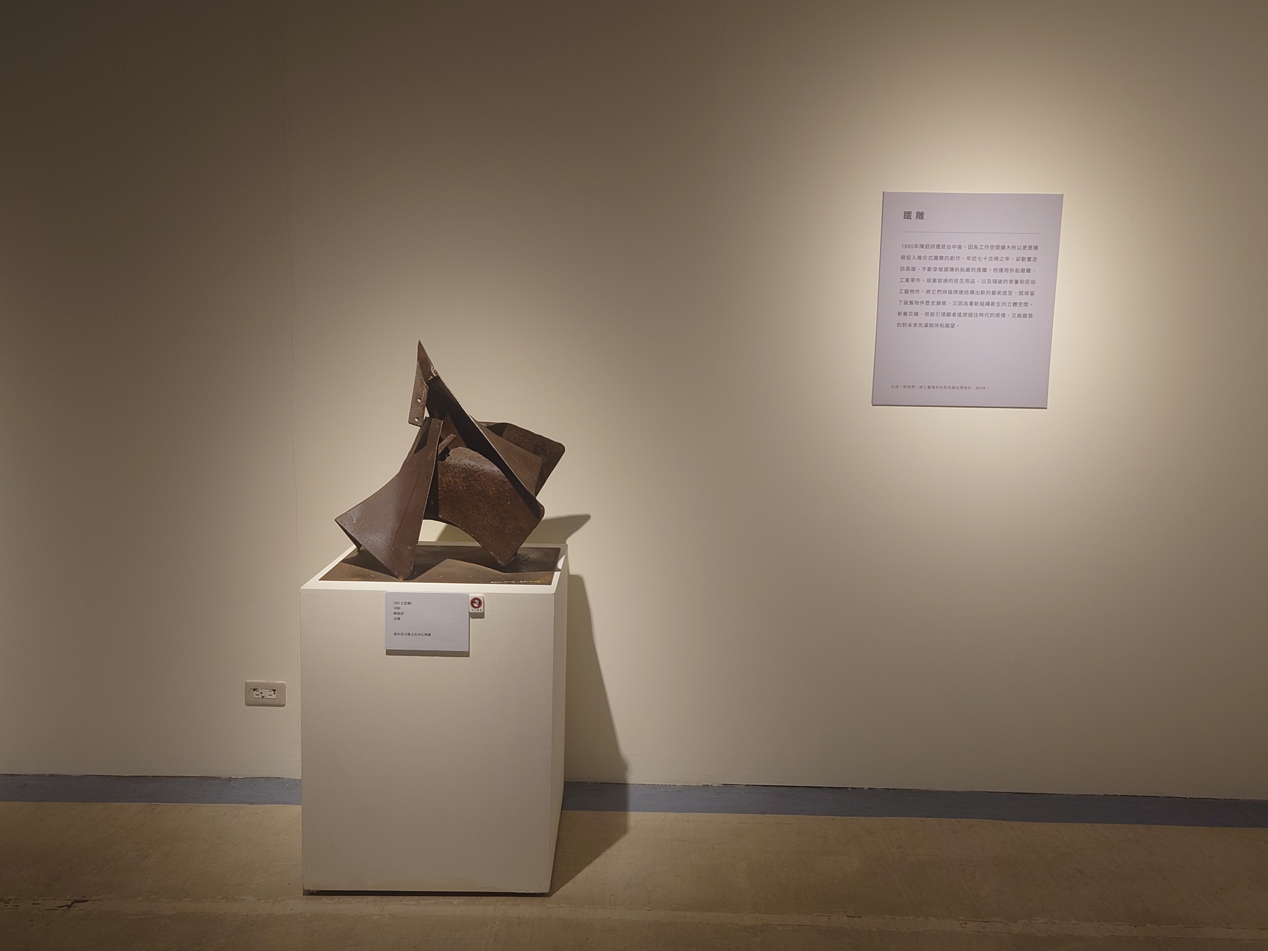 當冰冷的廢鋼鐵遇上藝術家的靈魂,會擦出什麼樣的生命火花?台中市政府文化局即日起在大墩文化中心辦理「解構.結構—典藏 陳庭詩」典藏展。精選文化局典藏的3件壓克力畫作及9件複合鐵雕藏品,帶領民眾重溫這位現代藝術先驅如何透過「點鐵成金」的巧手,展現其對廢棄物的藝術轉化,領先時代實踐了現今聯合國永續發展目標(SDGs)的理念,帶民眾一睹大師藝術風采。