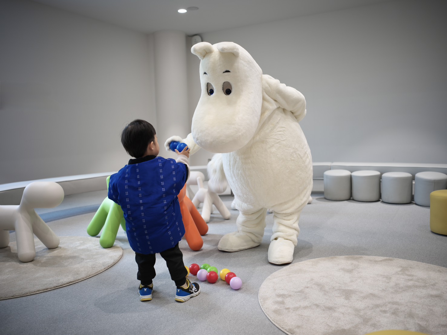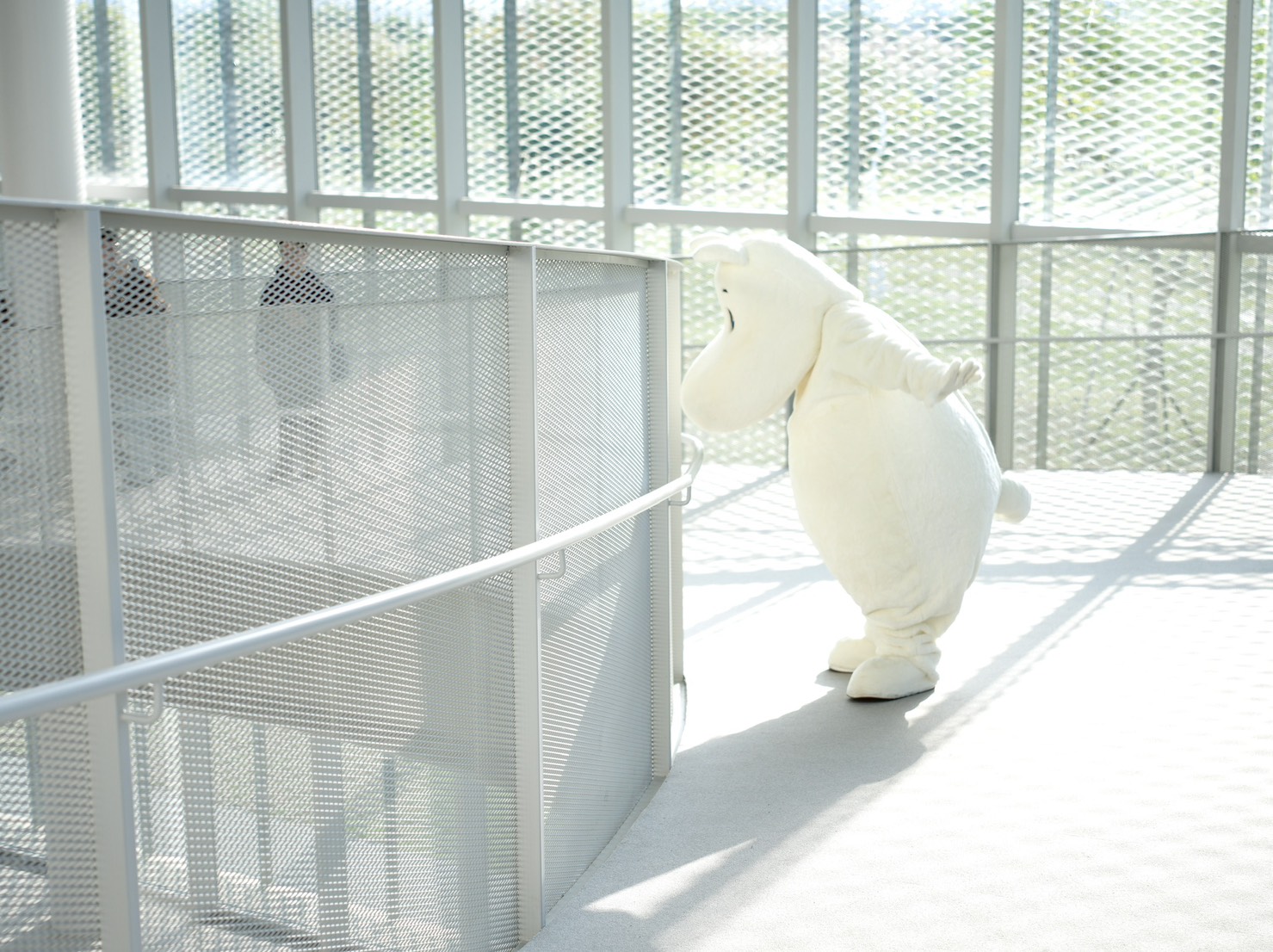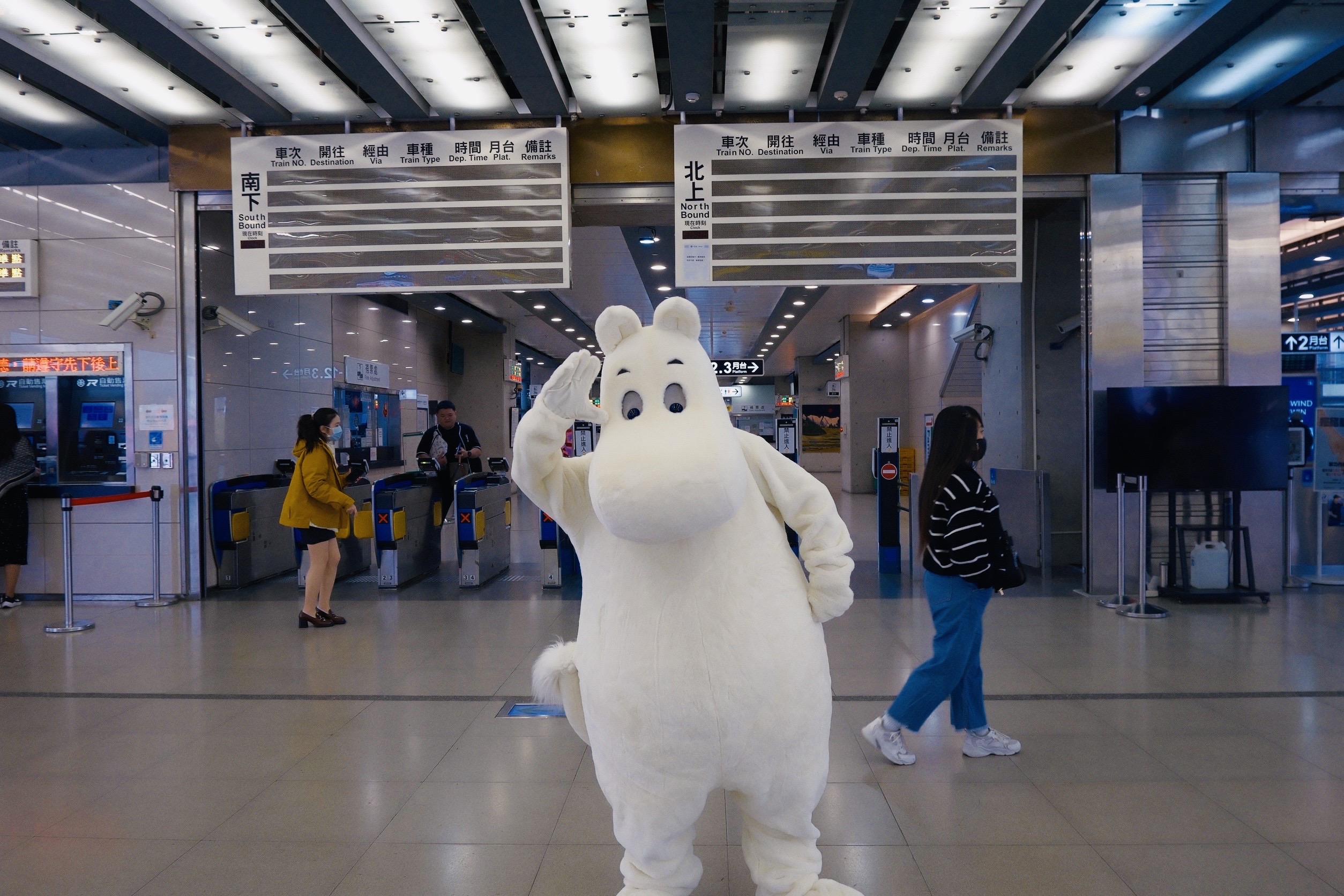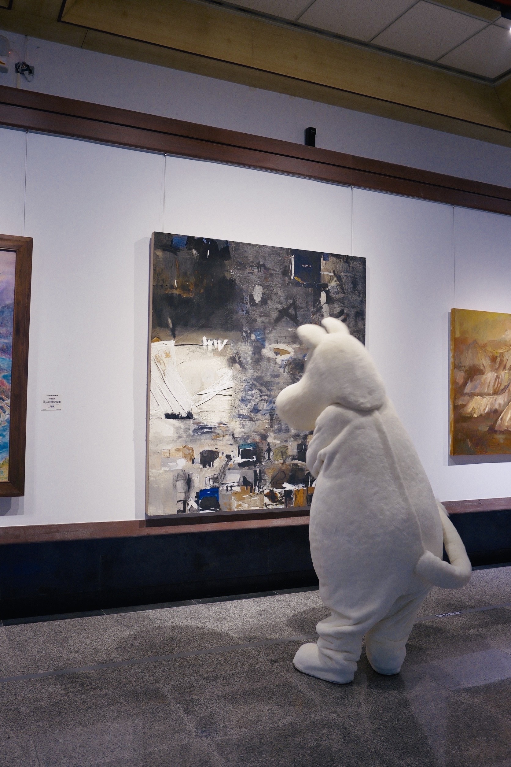 影片《追光之旅:姆明在哪裡》以「線索」作為故事核心,由姆明人偶找尋姆明展區,旅程自台中車站展開,走入熟悉的城市起點,在人來人往之間揭開探索序幕。姆明人偶循著線索前行,來到台中綠美圖,在挑高的美術館大廳空間中,大型藝術作品垂掛其間,一本白色、毛茸茸外觀的書籍悄然現身,成為旅程的第一個提示。線索隨後延伸至兒童閱覽室外,相同的書籍再次出現,透過孩子筆下的塗鴉,串起閱讀、想像與城市記憶。
