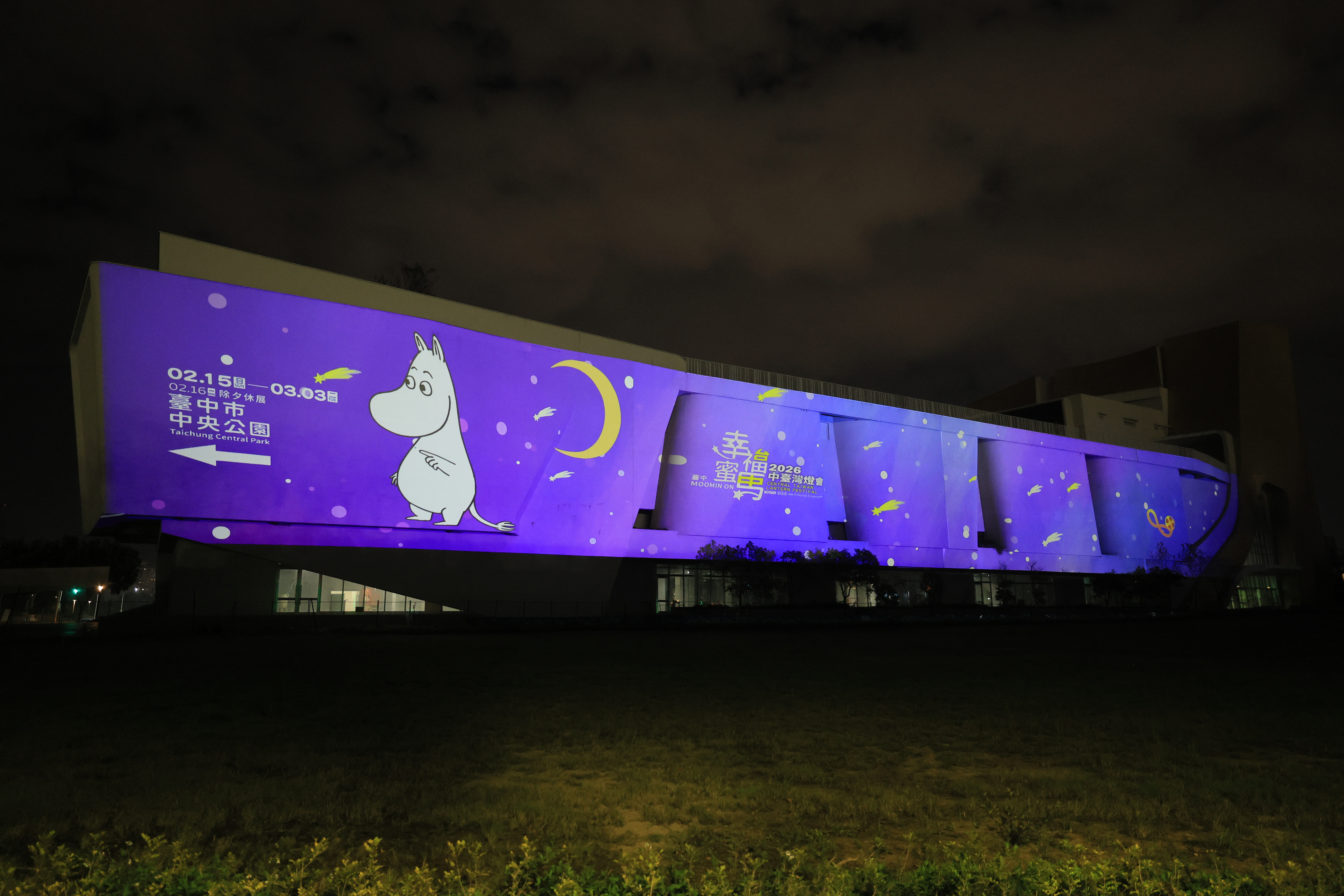 2026中台灣燈會「幸福蜜馬 台中MOOMIN ON」將於2月15日至3月3日在水湳中央公園盛大登場。為迎接燈會提前暖身,鄰近會場的「台中流行影音中心」即日起配合燈會主視覺,將外牆化身為巨大的光影畫布,透過絕美極光背景呈現姆明(Moomin)靜謐而療癒的經典身影,與主燈區相互輝映,迎接中台灣燈會的到來。