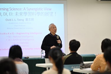 講座中,曾志朗院士指出,未來科學的關鍵不在於單一學科的堆疊,而在於「整合、融合」的能力。他強調,知識不能只是片段式的拼湊,而應從「組合」走向深度「整合」,最終進一步「融合」為能解決真實問題的行動力,才能真正體現「知識就是力量,融合才能化腐朽為神奇」的精神。