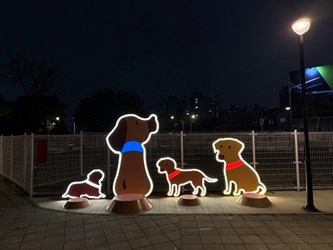 陳局長進一步說明,寵物專區設計強調與自然景觀融合,採草皮鋪面及開放式配置,避免過度封閉造成視覺阻隔,使寵物活動空間自然融入整體公園景觀;另於出入口動線設置洗手洗腳台等實用設施,操作直覺、便於清潔維護,兼顧使用者體驗與後續管理需求;入口處亦設置大型寵物公園意象,期盼成為在地新的打卡亮點。