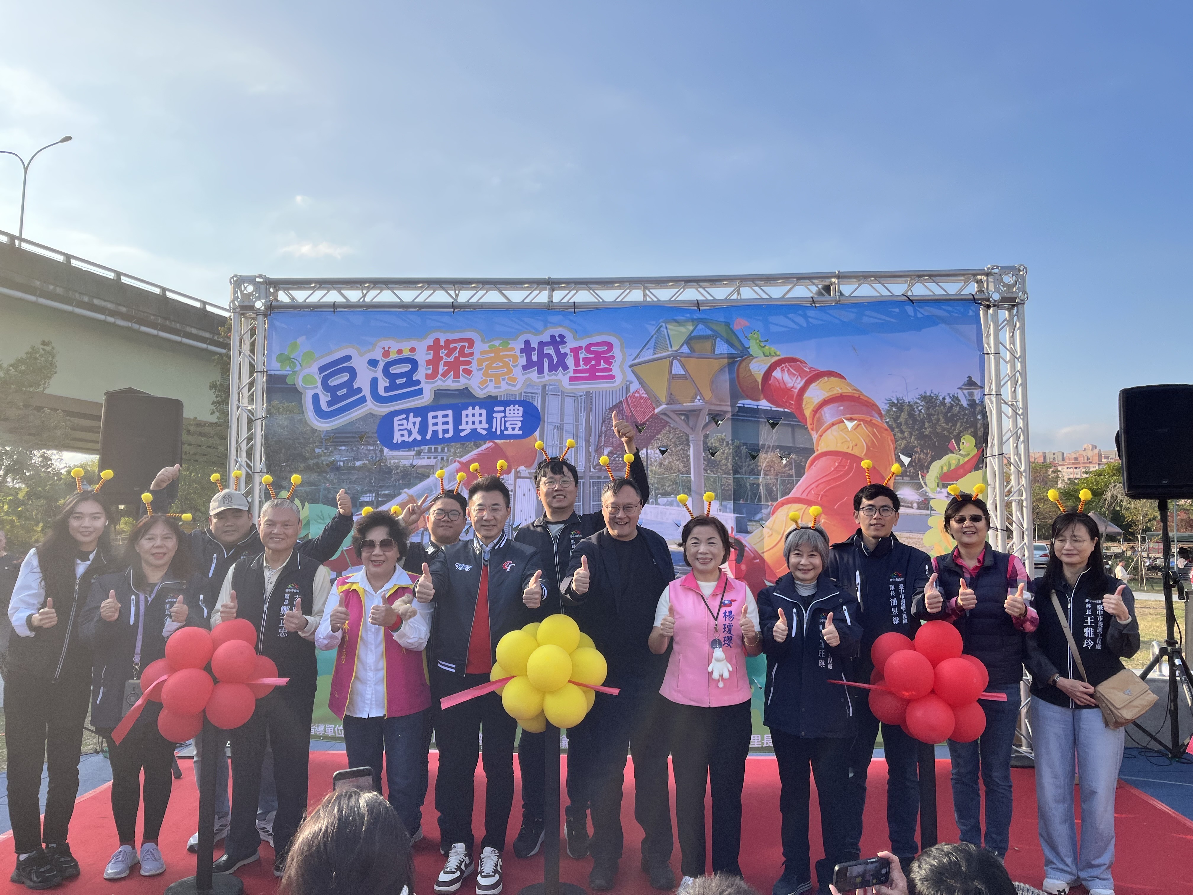 此次共融遊戲場啟用活動由地方自發性辦理,市府鄭照新副市長、立法院副院長江啟臣、立委楊瓊瓔、市議員林碧秀、大里區長鄭正忠,以及在地里鄰長與地方鄉親皆到場共襄盛舉,一同見證涼傘樹公園「探索城堡」正式啟用的重要時刻。