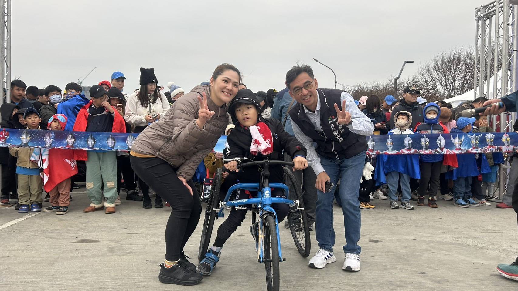 運動局指出,活動現場洋溢溫馨氣氛,不少家長分享,自己就是超人力霸王的忠實影迷,如今能牽著孩子一起參與路跑,格外有意義。其中,一名被大家親切稱為「慢飛天使」的孩子侯楷紘,在家人陪伴與熟悉的動畫配樂中,勇敢踏上賽道,與心目中的英雄角色一同奔跑,感動許多現場跑者,掌聲與加油聲此起彼落。