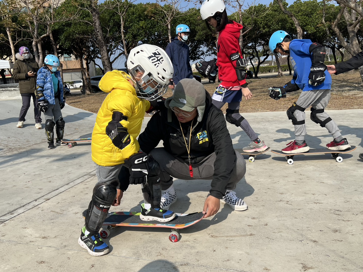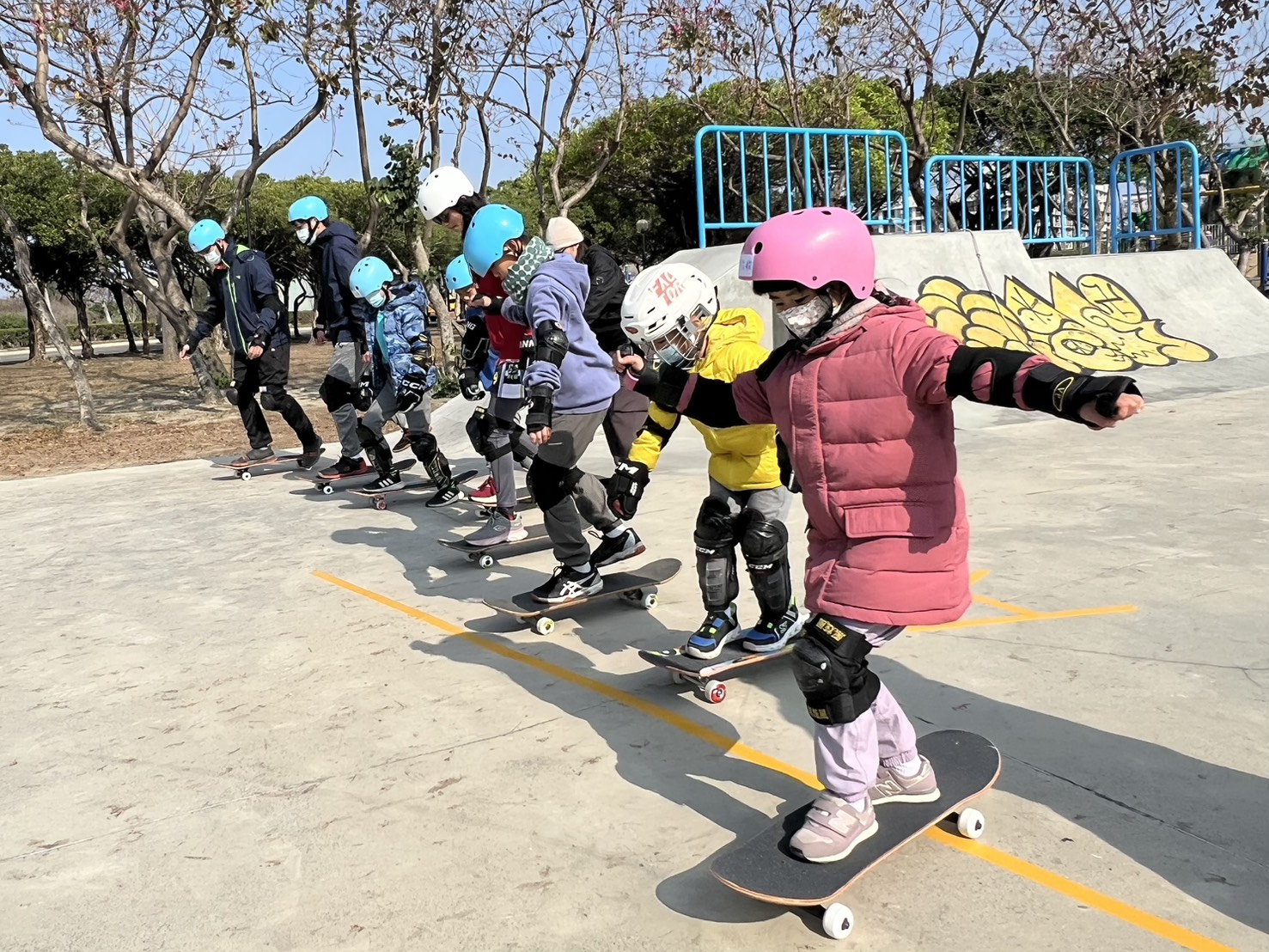 運動局表示,滑輪板運動結合平衡感、協調性與身體控制能力,適合不同年齡層循序學習。此次活動以入門體驗為主軸,安排專業教練於現場進行教學,從滑輪板構造認識、基本站姿、滑行與煞車技巧逐步引導,協助參與者建立正確操作觀念與安全意識。