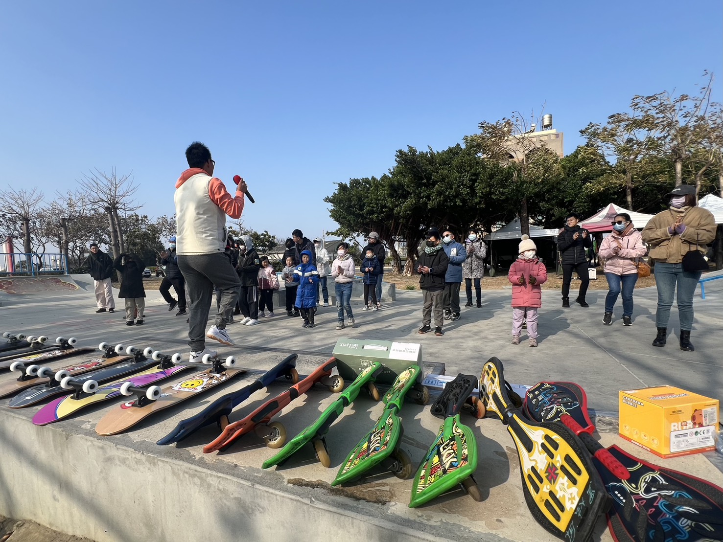 此外,活動也同步結合運動安全宣導,提醒民眾從事滑輪板及其他動態運動時,應配戴頭盔、護膝等必要護具,並依自身體能與場地狀況適度運動;現場搭配抽獎等互動設計,提升參與感,營造輕鬆愉快的社區運動氛圍。