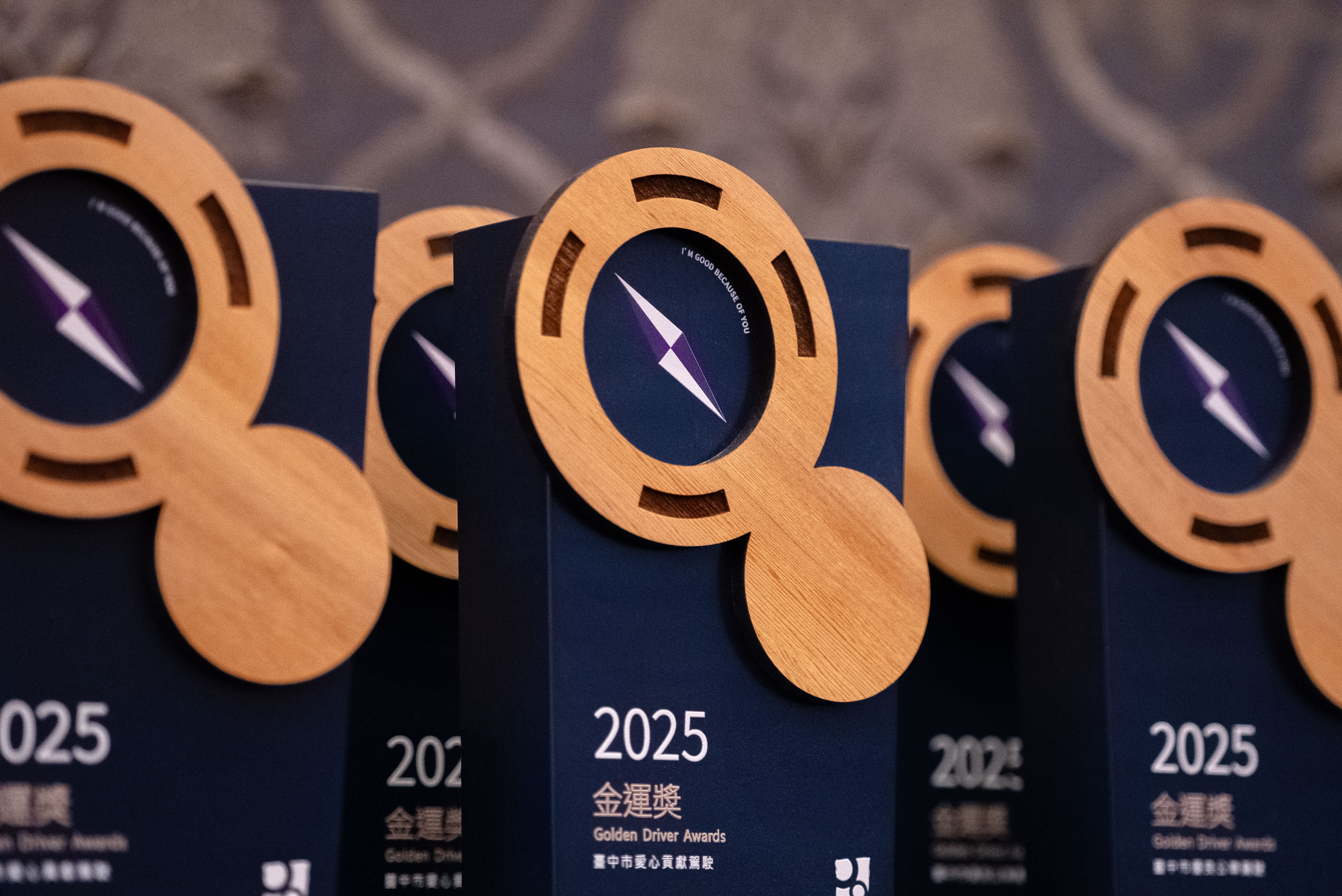 葉局長指出,「金運獎」是台中市表揚公車駕駛長的重要榮耀,2025年金運獎設計意象以水湳轉運中心的「北極星」概念為核心,象徵返鄉與前行的指引之光,結合市區與偏鄉公車路網的年輪意象;小圓準心則代表駕駛長行駛過程中落實「指差確認」,寓意由每一位駕駛長的專業與堅持,串起安全、便捷且無礙的大眾運輸服務,讓市民與旅客都能安心搭乘。