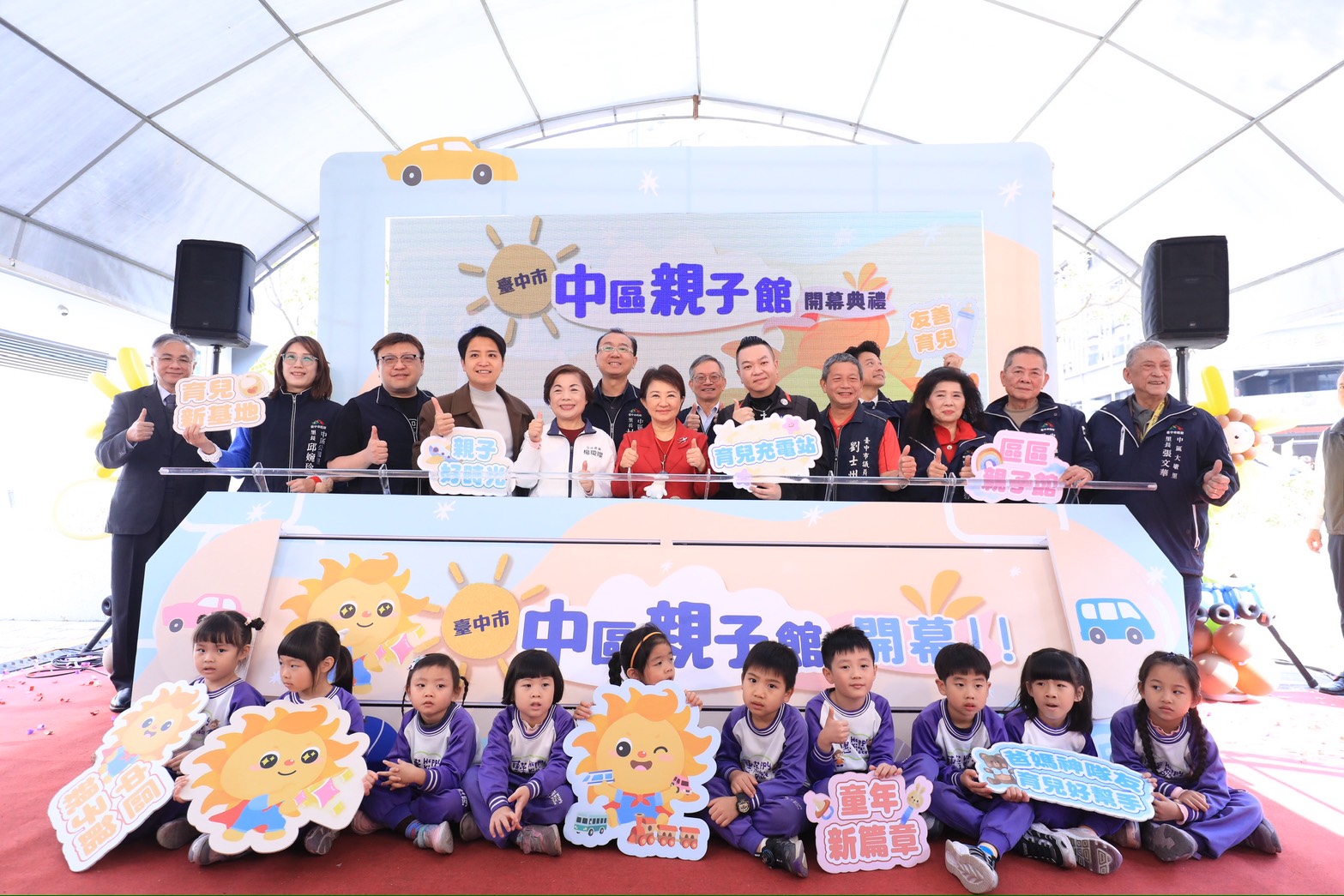 位於中區第二市場停車場的中區親子館今(9)日正式開幕!市長盧秀燕現場與親子們共同繪製春聯,慶祝台中市「區區親子館」政策再達新里程碑!盧市長表示,過去在中區及西區等舊城區都沒有親子館,中區親子館落成啟用是給舊城區最好的新年禮物,因為親子館不僅完全免費且設施豐富,並提供親子共融、玩具共享等育樂功能,此外還規劃了近千個停車位,讓家長大包小包帶孩子開車出門也很方便。