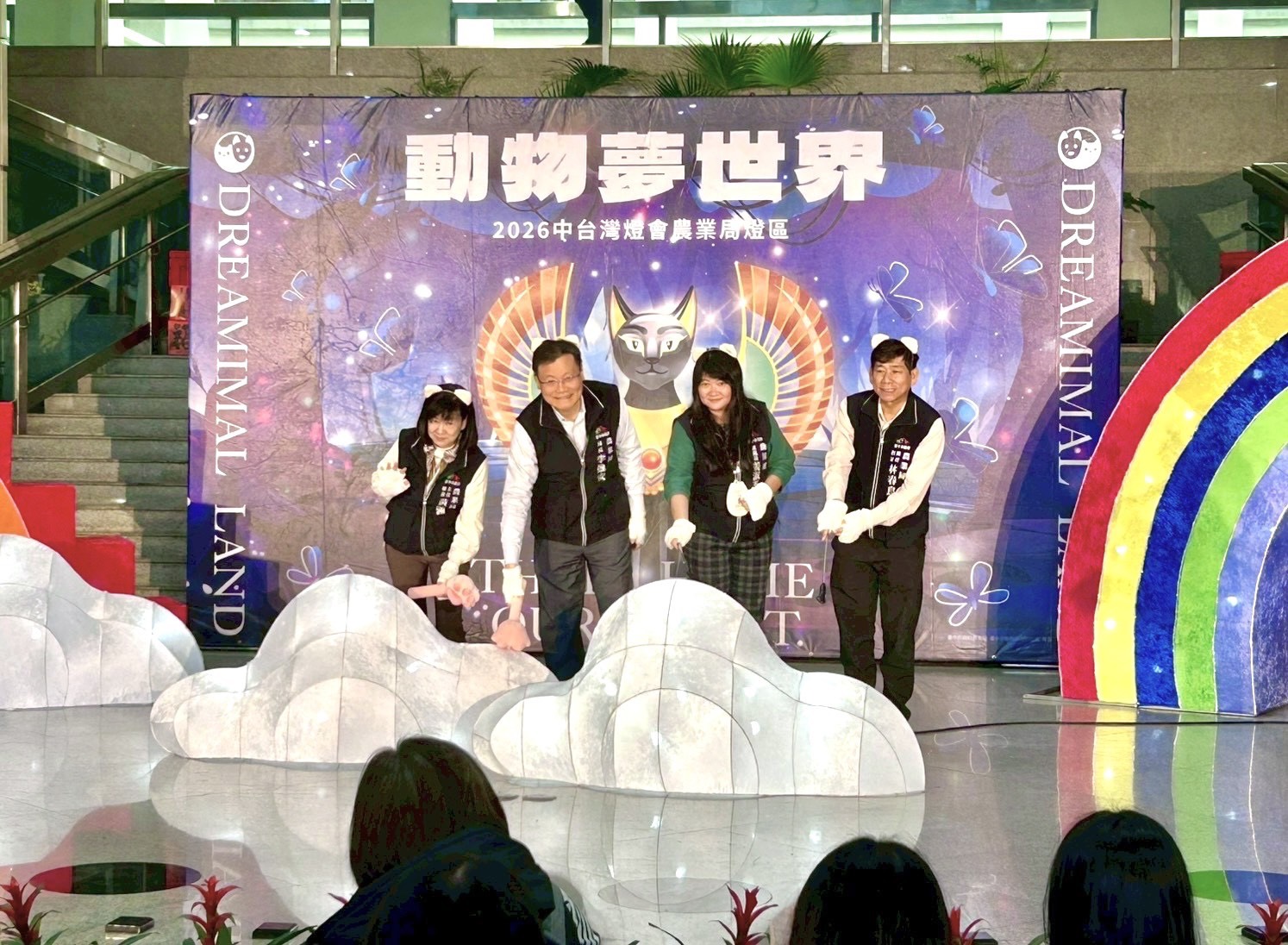 本次記者會特別安排吸睛開場表演,由臺中市如玲舞蹈表演藝術教育學院帶來「小白貓主題創意舞蹈」,以活潑童趣的舞步揭開「動物夢世界」奇幻序幕,呼應燈區以小白貓「喵喵」為主角的設定,讓現場觀眾們感受燈區的活潑童趣的氛圍與故事魅力。「動物夢世界」燈區邀請民眾跟隨主角「喵喵」踏入從神秘通道,在夢境裡逐步認識野生動物面臨的生存危機、飼養寵物的飼主責任等,在旅途中看見人與動物和諧共處的美好,提升民眾對動物福利的認知。