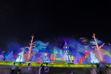 陳局長進一步指出,「極光下的姆明谷」主燈秀以有著紅瓦屋頂、藍莓色外牆的15公尺高「姆明家」為視覺焦點,技術上更突破以往IP氣偶只能靜態觀賞的框架,結合台中動態機械科技,讓姆明一族(The Moomins)搭乘環形軌道小火車,隨著音樂律動穿梭於樹林山谷間,搭配幻化為精靈的高空綢吊專業舞者,輔以彩雷、煙霧呈現漫天極光的效果,加上特效泡泡帶來的驚喜,讓觀眾宛如走進北歐夢幻夜空,強力推薦被空拍影片感動的朋友,一定要安排行程來現場看!