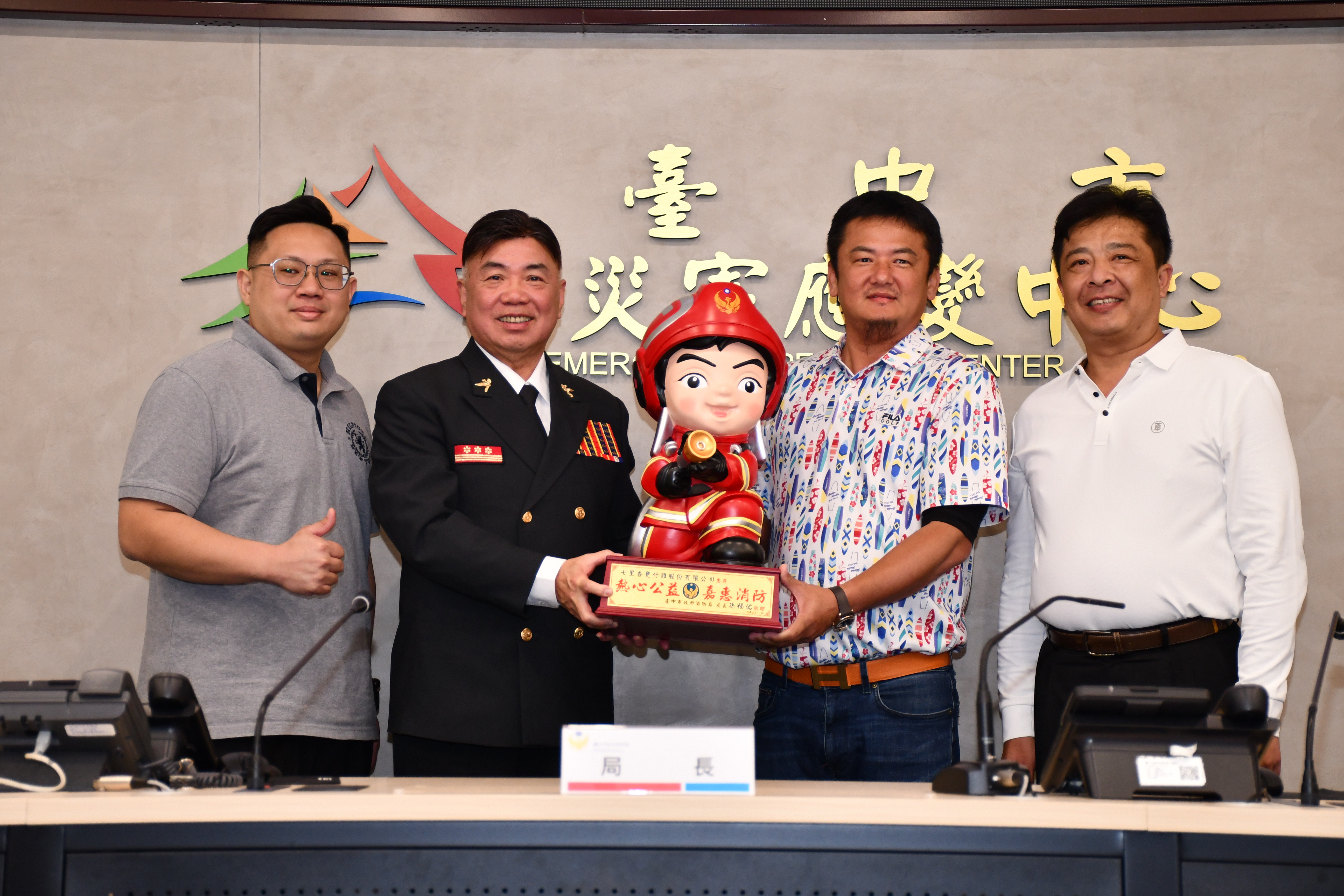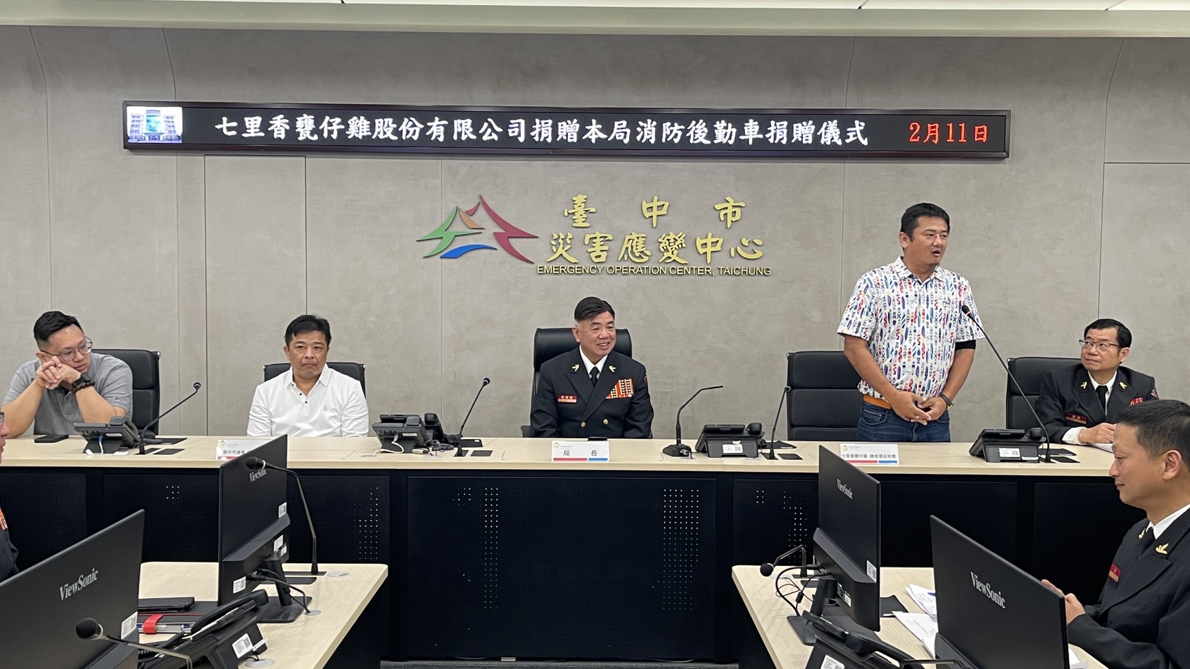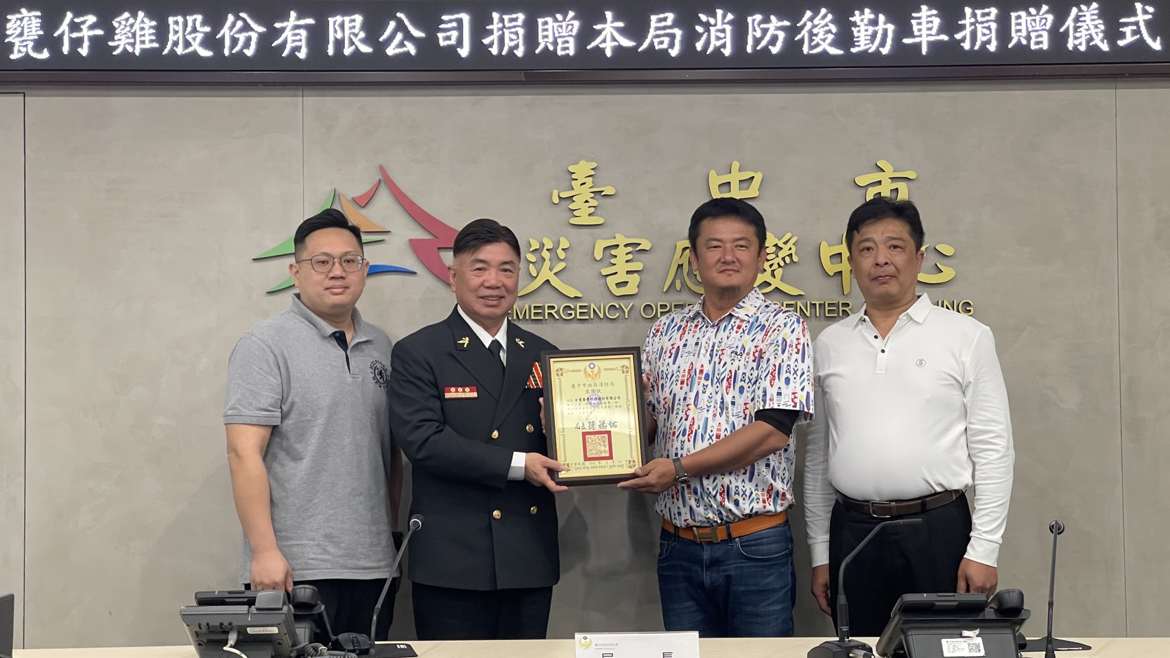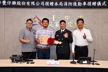 知名美食餐廳七里香甕仔雞股份有限公司平時熱心公益,日前甫捐贈救護車及救災指揮車給南投縣消防局,今(11)日又捐贈一部高性能消防指揮車給台中市政府消防局,消防局特別在主管會報中,舉辦贈車儀式,由消防局長孫福佑親自主持,各級幹部均出席觀禮,一致表達深切的感謝之意。