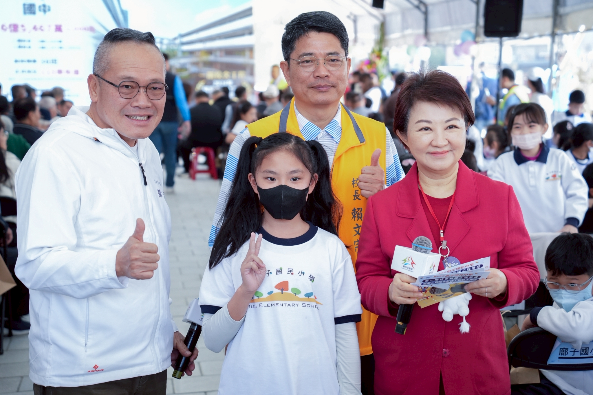 盧市長指出,任內全市新設十餘所學校,北屯區即占5所。廍子國中一期工程經費約3億9,200萬元,由中央與地方各負擔一半;二期工程經費約2億6,267萬元,由市府全額編列。今日一期落成、二期動土,115學年度9月正式招生,讓孩子就近安心入學。
