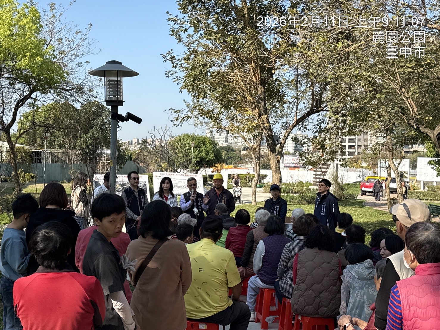 市長盧秀燕上任後積極推動「台中美樂地計畫(Taichung Melody)」,持續打造幸福宜居的花園城市;台中市政府建設局推動「花之道」計畫,營造自然豐富、四季有景的園道風貌,成果深獲肯定;繼多處園道完成改善後,此次首度於「太平區麗園公園」投入500萬元導入自然庭園式設計手法,透過多層次植栽重塑公園景觀;工程已於1月底提早完工,今(11)日建設局長陳大田特別到場視察,並表示在歲末年初之際,為市民獻上一份充滿綠意與希望的新年禮物,帶來更舒適宜人的花園廊帶體驗。