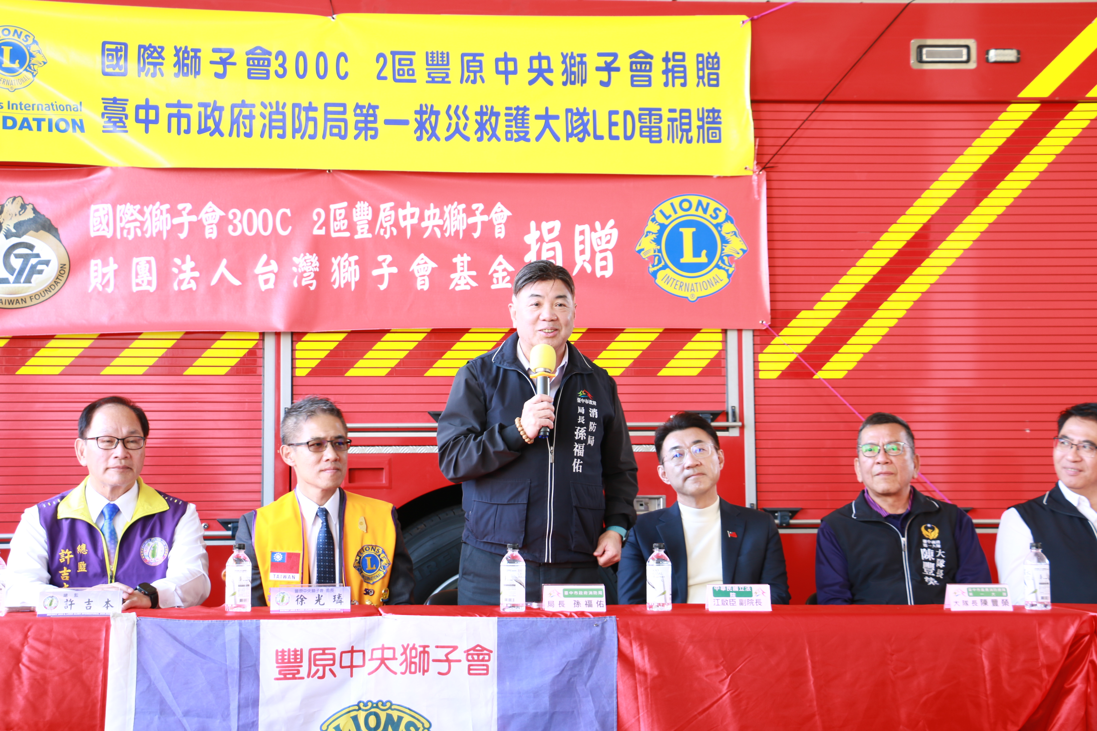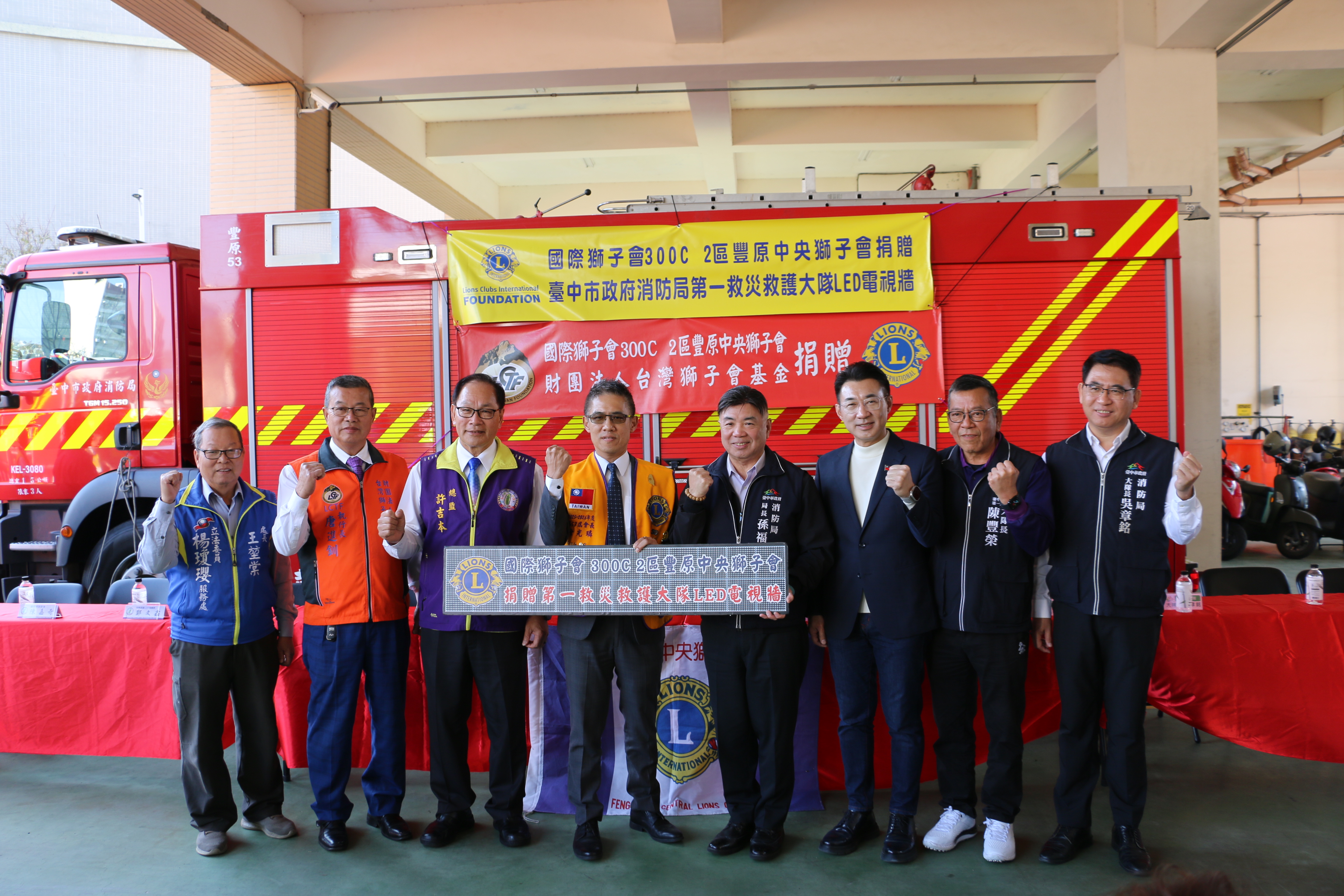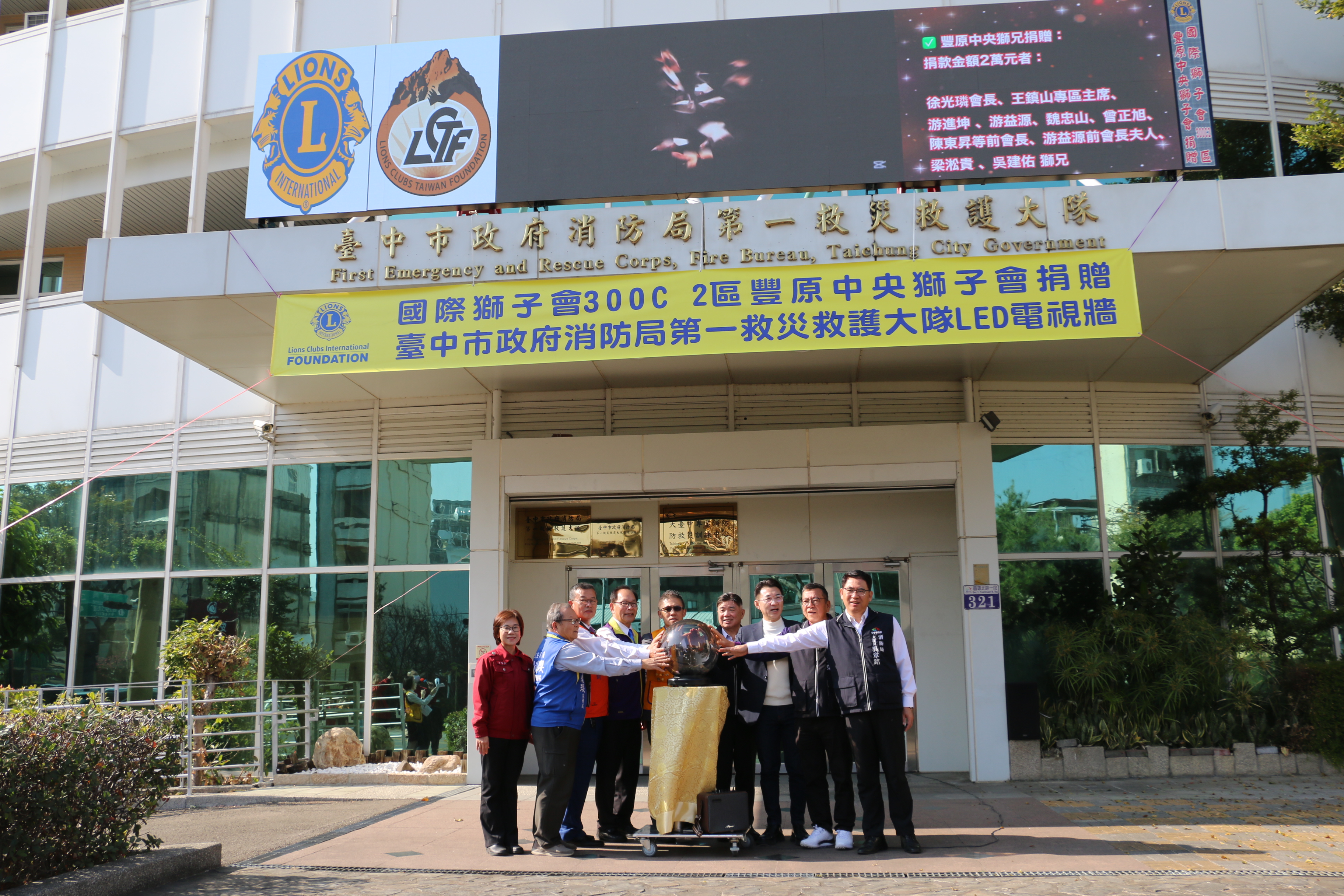 為提升防火防災宣導效能,增進市民防災知識與應變能力,國際獅子會300C2區豐原中央獅子會會長徐光璘秉持「取之於社會、用之於社會」精神,帶領全體獅友熱心捐贈台中市政府消防局第一救災救護大隊LED宣導電視牆,作為推動消防宣導及政令資訊傳遞的重要設備。市府消防局表示,此次捐贈的LED宣導電視牆,未來將廣泛運用於消防業務推行。