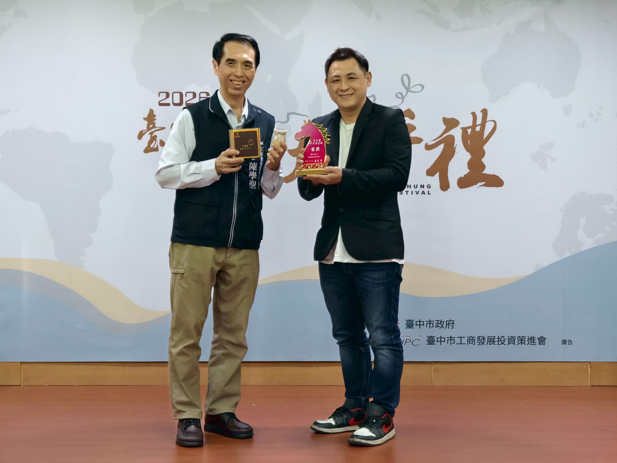年節送禮更多選擇!台中市工商發展投資策進會今(11)日舉辦「2026第17屆台中市十大伴手禮頒獎記者會」,公布20家首獎品牌,由總幹事陳學聖親自頒發獎盃。工策會表示,台中素有「糕餅之鄉」美譽,本屆共選出「糕餅烘焙組」及「特色文創組」各10家首獎品牌,展現台中新舊融合的產業實力。適逢農曆春節將至,工策會期盼透過獎項帶動年節買氣,持續擦亮台中伴手禮金字招牌。