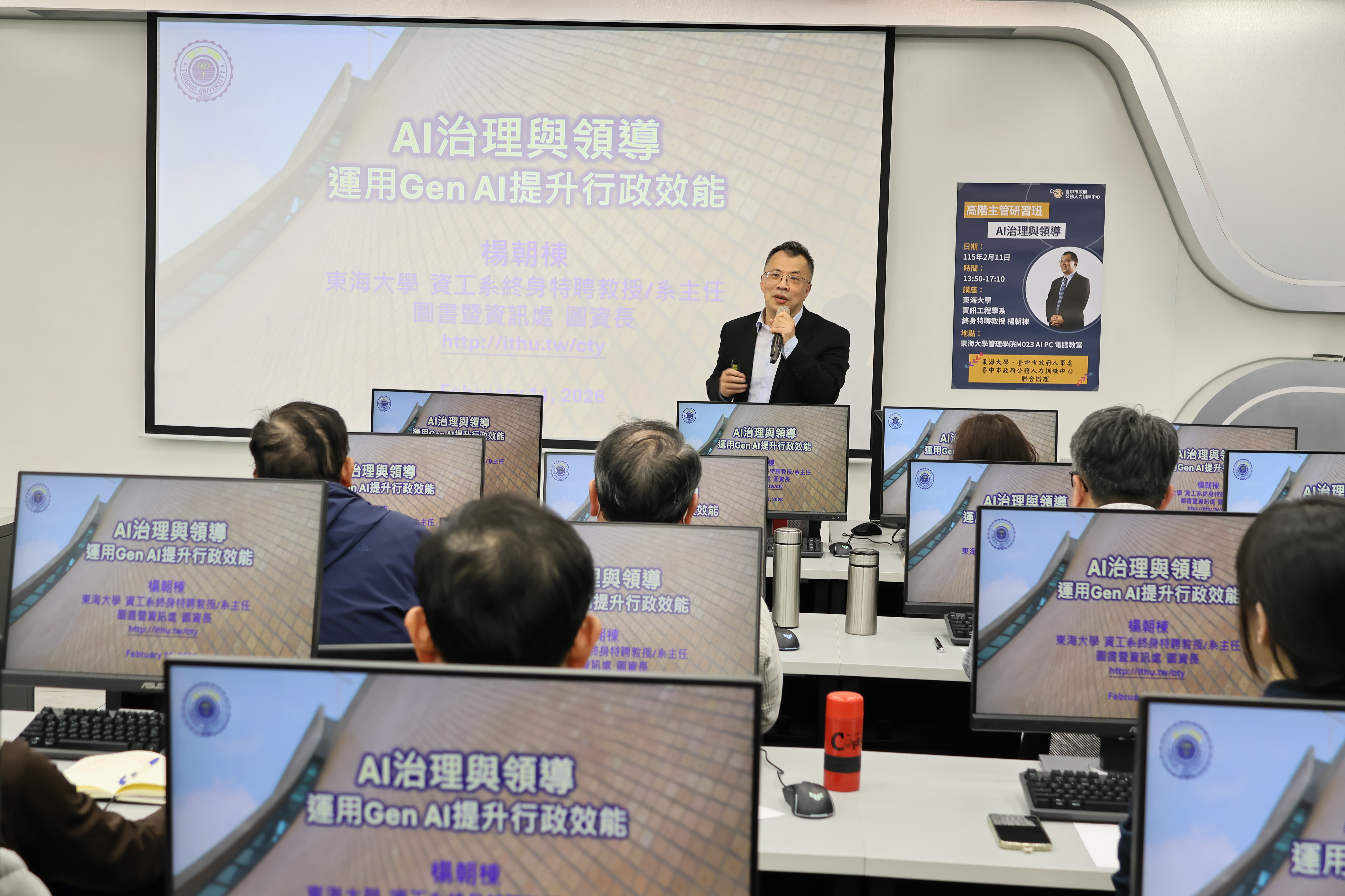 為落實市長盧秀燕打造智慧城市的目標,台中市政府於今(11)日攜手東海大學,辦理「高階主管研習班-AI 治理與領導」,為市府團隊導入AI 工具的學習課程。中市府人事處指出,此次研習特別選在擁有全台校園最強「B200 AI Pod 算力中心」的東海大學舉行,邀集市府各機關 31 位簡任以上主管參與研習,並由資工界重量級學者楊朝棟教授親自授課。藉由頂尖學術資源與高端算力硬體的加持,強化決策者的數位轉型領導力,不僅體現「政學聯手、科技賦能」的指標意義,更為智慧市政開創嶄新格局。