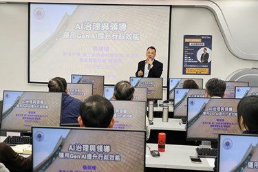 人事處說明,講座邀請在AI領域享有盛名的東海大學資訊工程學系終身特聘教授楊朝棟擔任,楊教授亦是圖書暨資訊處圖資長,曾榮獲「2024李國鼎會士獎」、「2021李國鼎穿石獎」、「2021傑出工程教授獎」、「2018傑出資訊人才獎」多項獎項。楊教授於課堂中深入淺出解析生成式AI,協助簡任主管們將AI轉化為管理利器,經由實務示範操作,讓與會同仁收穫滿滿。