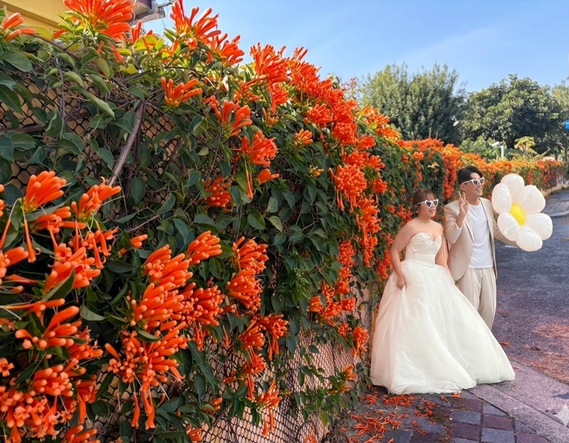 環保局另外指出,中平路清淨園區自112年底起亦沿外牆種植炮仗花,打造近900公尺花牆,成功改善鐵皮圍牆單調景觀,也拉近清潔隊與社區民眾距離。花期盛開時,吸引婚紗業者與里民前來拍照取景,成為地方熱門打卡點。班長卓秀春表示,園區植栽多由同仁於例行作業之餘輪流照料,並選用阿罩霧培養土及外埔綠能園區沼液作為肥分來源,實踐資源循環再利用;綠意覆蓋牆面後,不僅提升景觀質感,也讓同仁在忙碌工作中獲得片刻療癒。