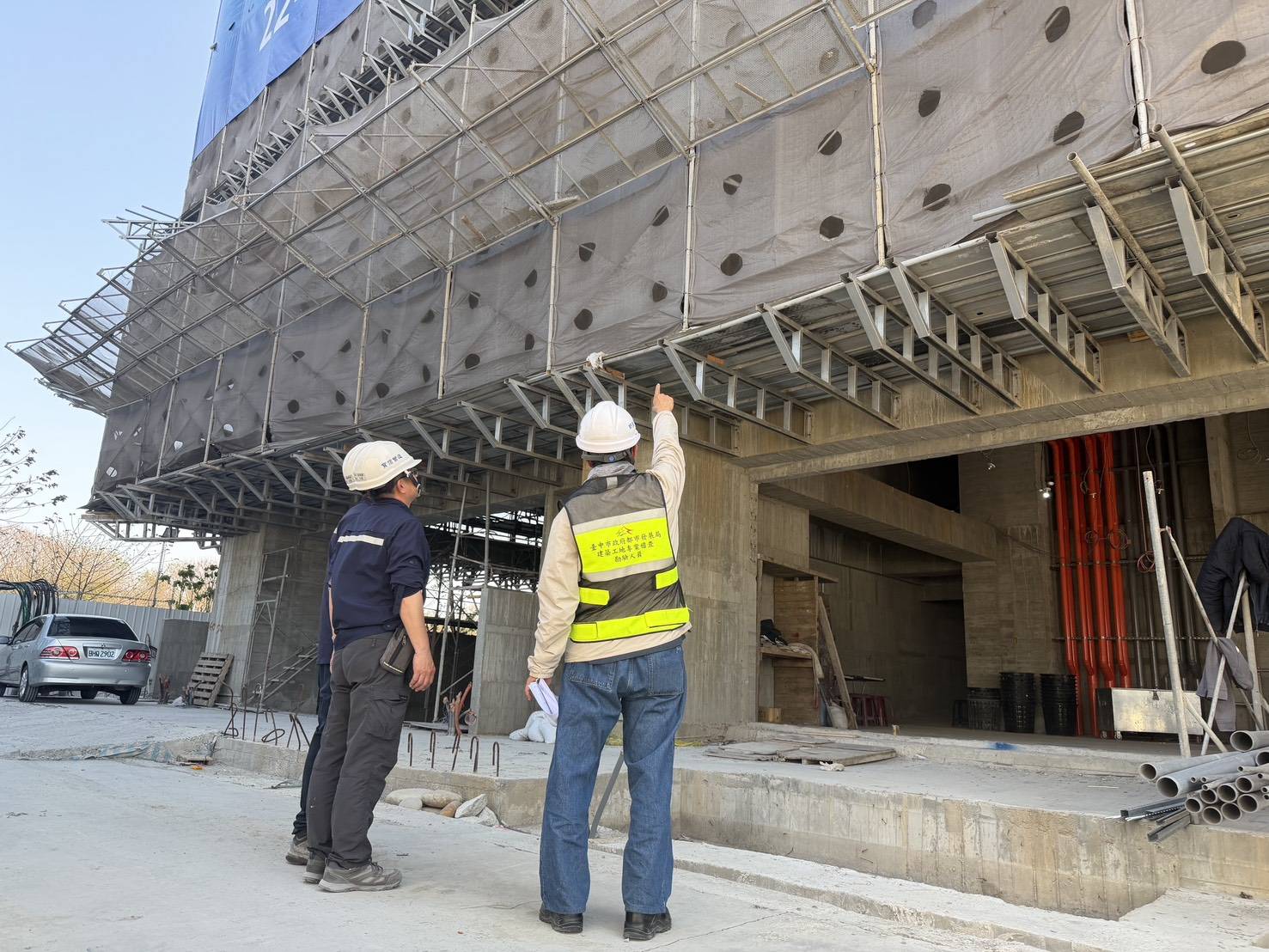 另都發局也結合民間專業資源,特別委託「台中市結構工程技師公會」於2月10日至12日連續3天辦理專案稽查作業,抽查30處地下室深開挖、高樓層設置施工架及塔吊設備等高風險工地,透過工地自主檢查及專業公會現場抽查的雙重確認機制,加強把關並確保各項安全防範措施確實落實到位。倘有不合格處,除要求立即改善並予以重懲,截至2月11日止已完成專案稽查18處工地全數合格。