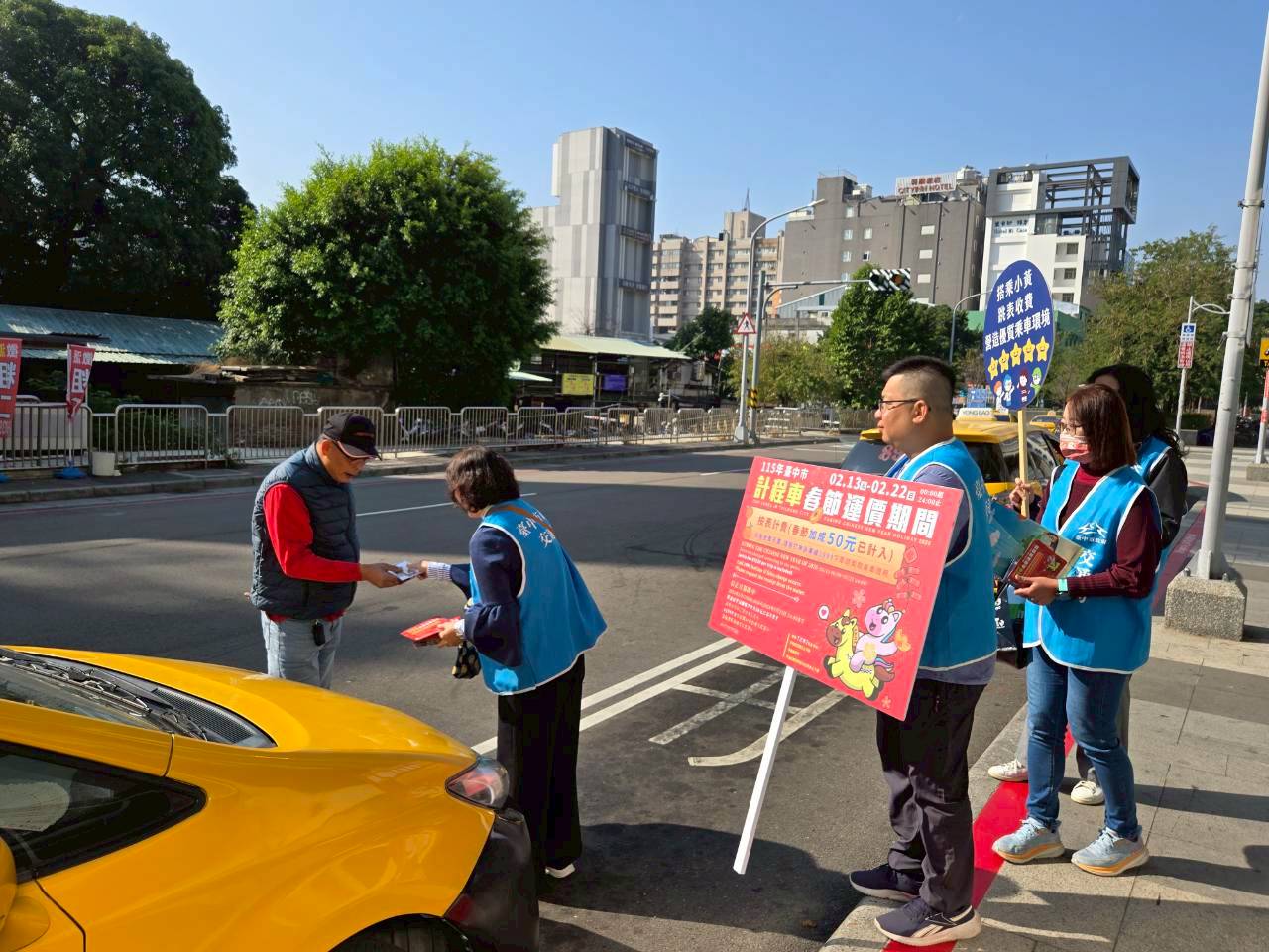 交通局表示,因應國際旅客增加,為讓乘客清楚了解計程車春節收費規定,避免語言障礙或誤會,近日已在台中火車站等主要交通樞紐加強宣導,還特別印製中、英、日三國語言的春節費率貼紙,向不同國籍旅客說明收費規定,由計程車公(工)會及各大車隊發放給駕駛,張貼於車內明顯位置。同時,今年持續準備韓文、泰文、印尼文、越南文等4國語言宣傳單,協助業者擴大宣導,展現台中市友善、貼心的城市形象。