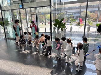 除了提燈遊行,為了讓孩子充分體驗滿滿的年節儀式感,老師也在農曆連假前帶著孩子們前往市政大樓一樓服務中心向志工及現場民眾拜年。孩子們用稚嫩童音齊聲喊出「新年快樂」,志工阿姨們則熱情回贈裝滿糖果餅乾的小紅包,現場笑聲不斷,互動場面溫馨滿點。滿溢的年味與人情味,正是「幸福城市」的最佳縮影,傳遞春節的喜氣同時,更具體展現了台中推動幸福職場與友善托育的溫馨成果。