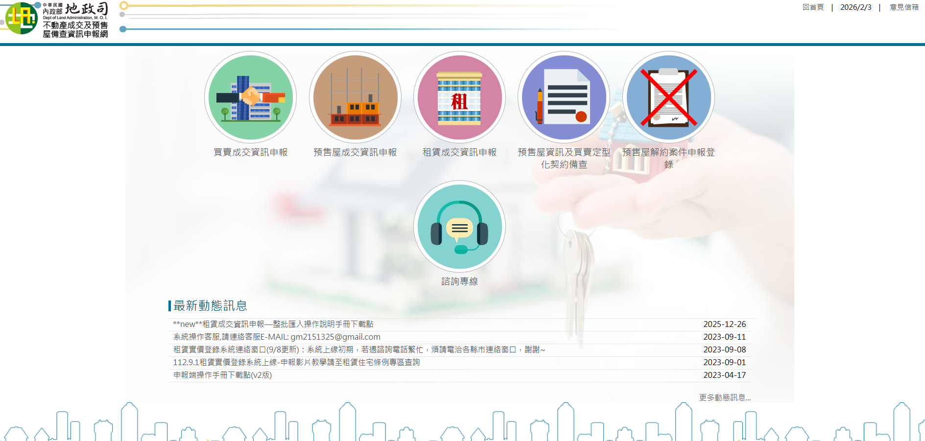 圖1內政部地政司不動產成交資訊及預售屋資訊申報網