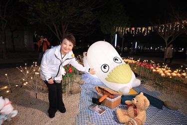 盧市長指出,台中多年來被評選為全台最幸福的城市,今年燈會主題IP特別邀請來自芬蘭、象徵幸福意象的姆明,盼藉由幸福城市與幸福國度的結合,帶給大家溫暖快樂。