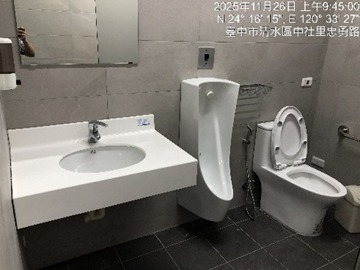 為提升台中市公廁環境品質,環保局去(114)年爭取環境部補助新台幣1,026萬元,協助市府各機關改造公園、藝文場所等14座老舊公廁,修繕後除了坐式廁間由29間提升至37間,坐蹲比達4:1以上,並優先使用環保、節能產品將設備全數汰舊換新,落實環保永續理念,另針對蹲式廁間全面加裝扶手並增設無障礙廁所4座、親子廁所1座及性別友善廁所1座,打造全齡優質如廁環境。