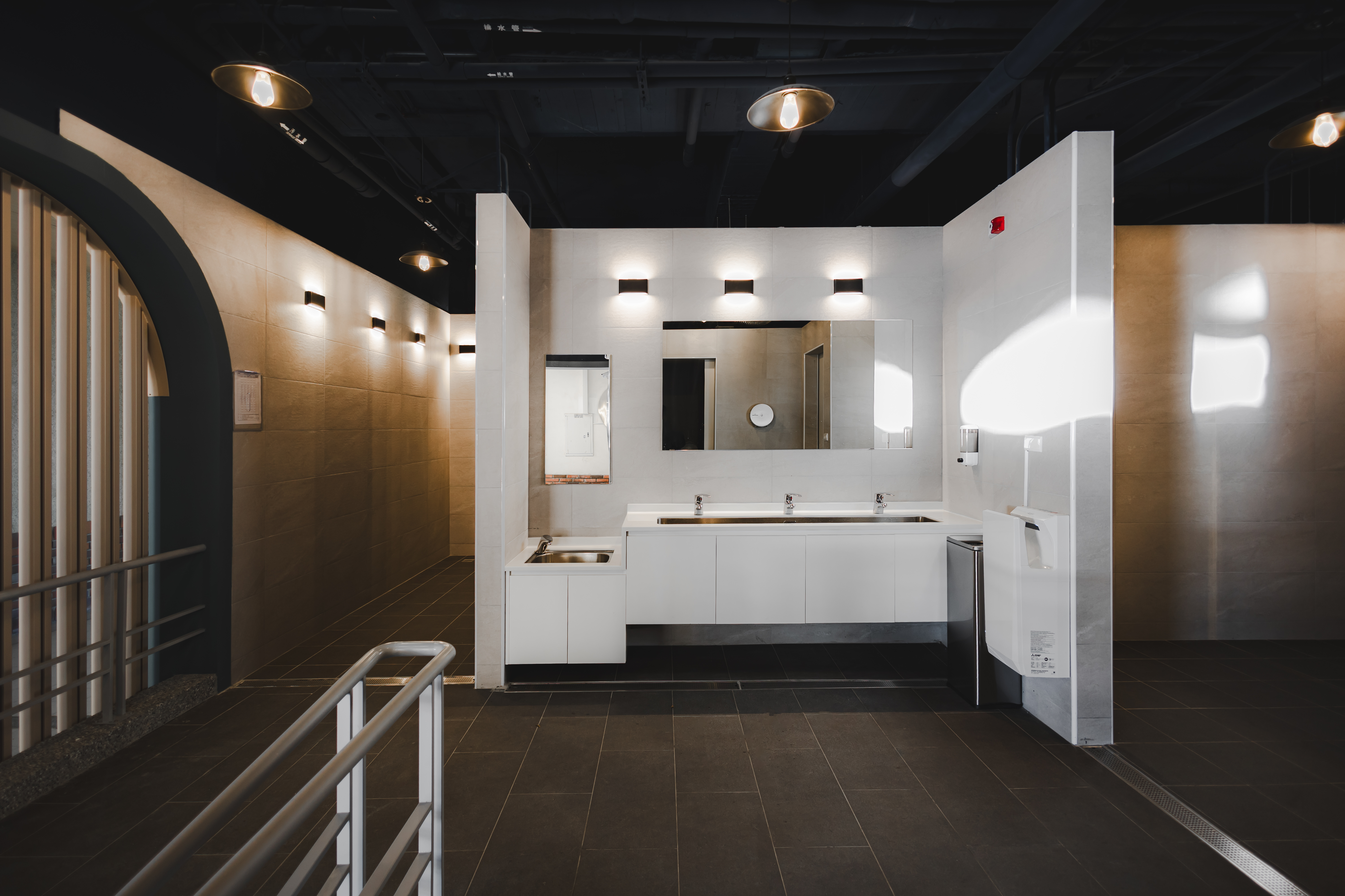 平時喜愛至港區藝術中心散步及欣賞展覽的蔡老先生說,之前部分廁所設備老舊,燈光相對昏暗,使用上有較多的不便。現在修繕後的廁所空間經過重新設計及更換設備後,連廁所本身都成為一門藝術,此外還新增無障礙廁所、親子廁所及性別友善廁所,讓他與太太在使用廁所時也能感受到滿滿的幸褔感。