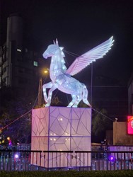 葫蘆墩圳燈區則以「水岸飛馬・幸福葫蘆墩」為主題,水利局設燈飾沿河岸鋪陳,結合春節與情人節意象,透過飛馬、金色光瀑、願望光束與水岸花都等設計元素,展現層次豐富的光影律動,象徵「願望在豐原升空、幸福在水岸落地」,打造兼具浪漫與喜氣的節慶水岸風景。